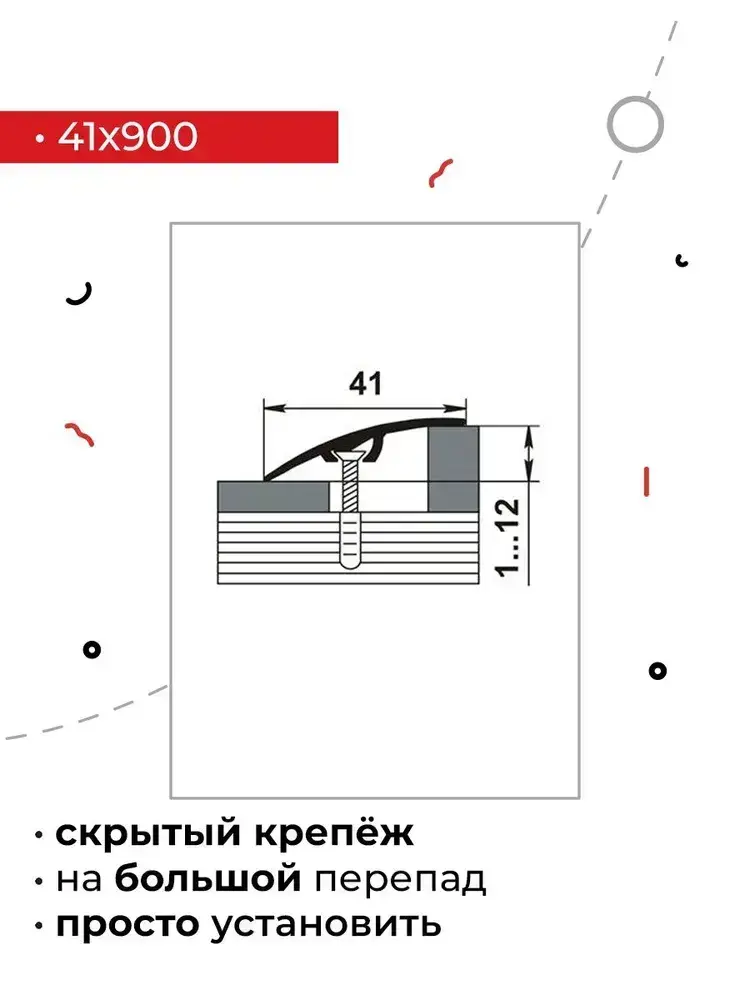 Порог для напольных покрытий со скрытым креплением разноуровневый 90 см