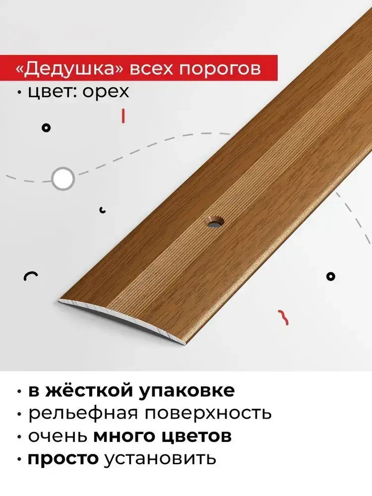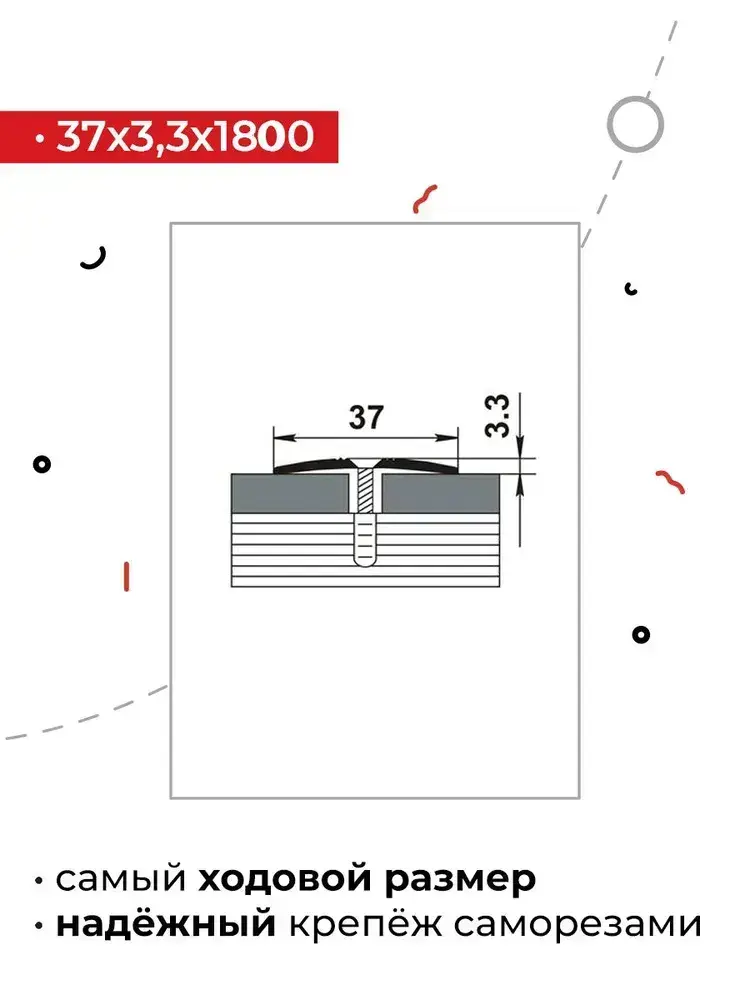 Порог металлический 37 мм 180 см для напольных покрытий на одном уровне