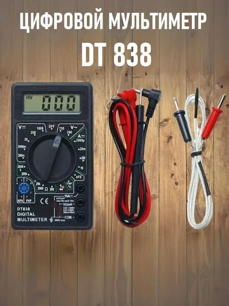 Портативный цифровой токоизмерительный (тестер электрический) мультиметр DT 838 с функцией прозвонки цепи