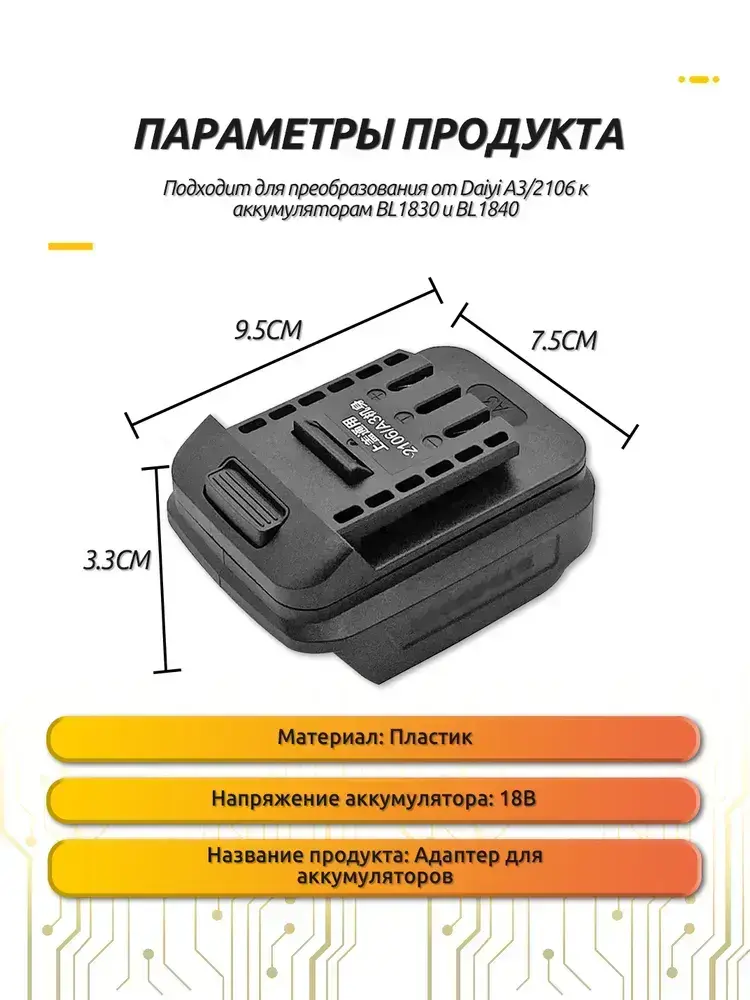 Преобразователь аккумулятора Da-Yi A3/2106 для аккумуляторов Makita BL1830 и BL1840, 18V