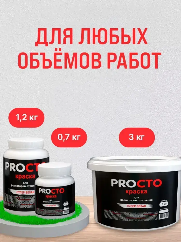 PROCTO Краска для радиаторов отопления, батарей и труб белая матовая эмаль без запаха быстро сохнущая акриловая 3 кг