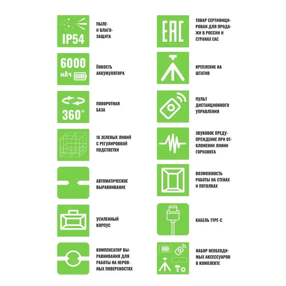 Профессиональный Лазерный уровень (нивелир) LT L16-360Z 4D 16 линий С ЯПОНСКИМИ СВЕТОДИОДАМИ SHARP + тренога 1 метр.