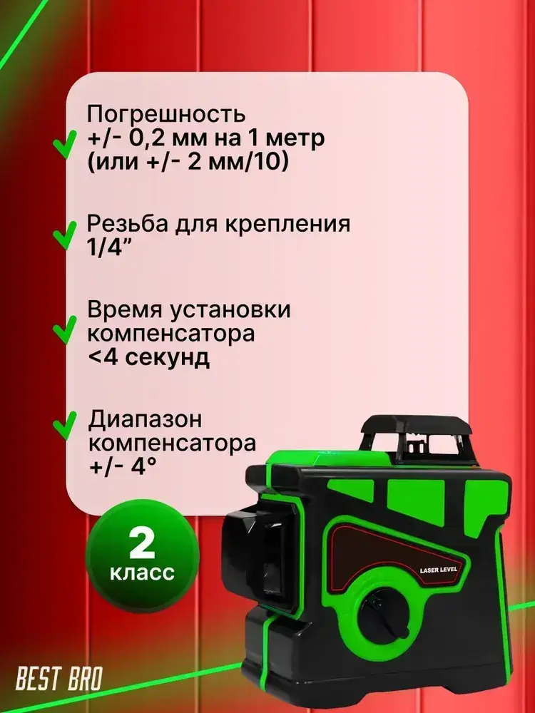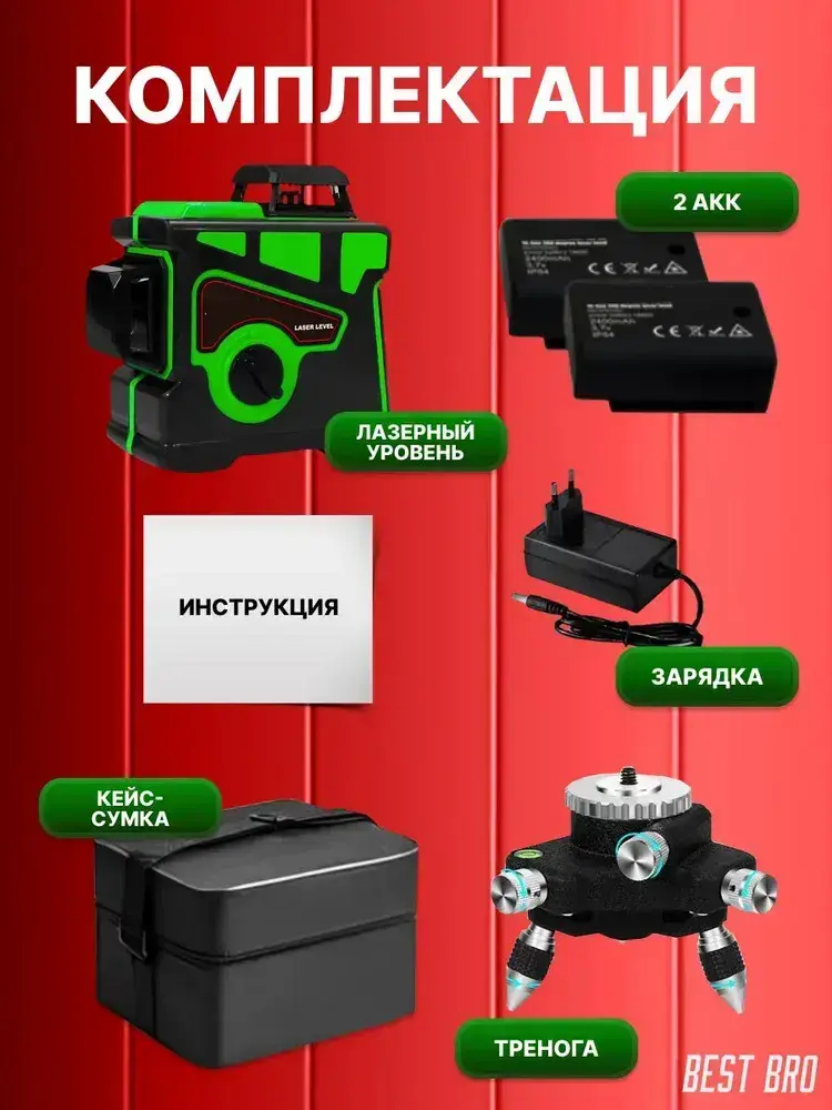 Профессиональный лазерный уровень строительный 360 3D / Нивелир, Зеленый луч