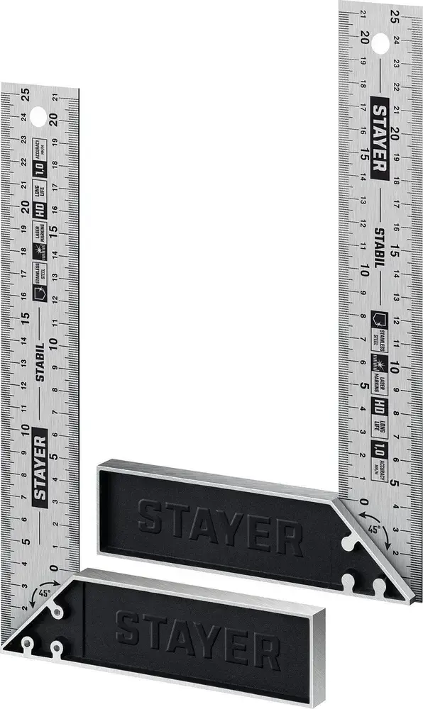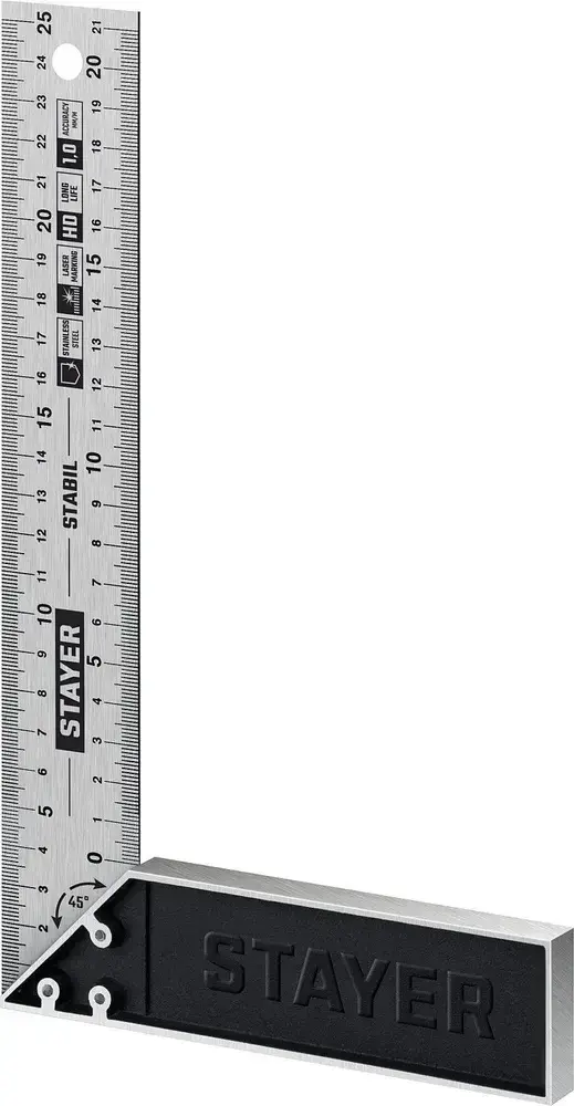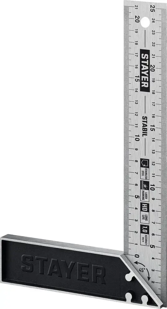 Профессиональный угольник с нержавеющим полотном, 250 мм // STAYER STABIL Professional