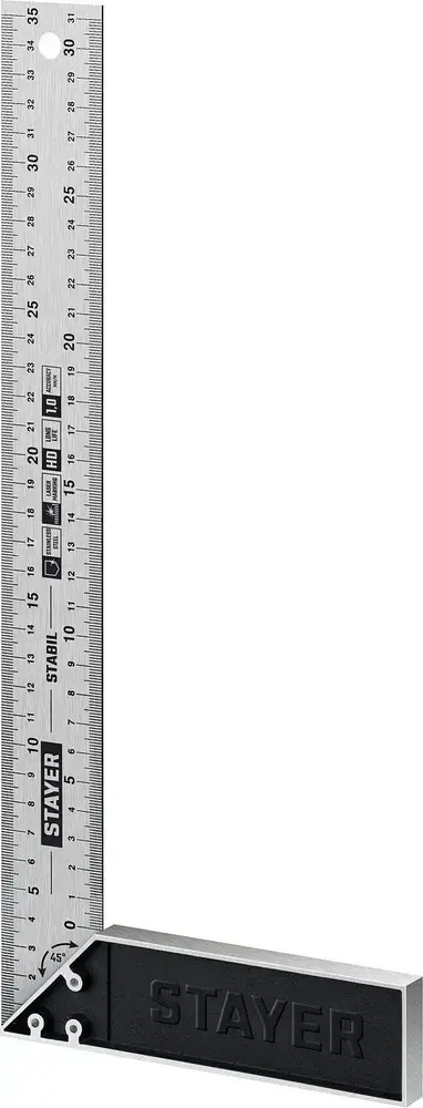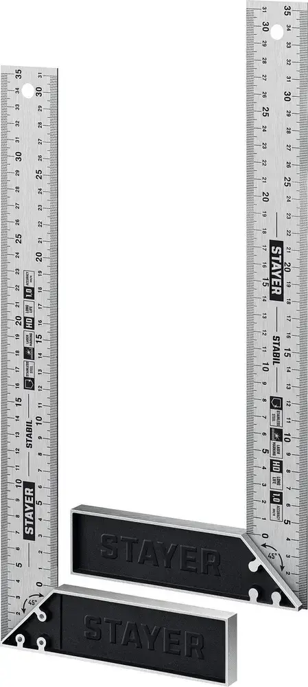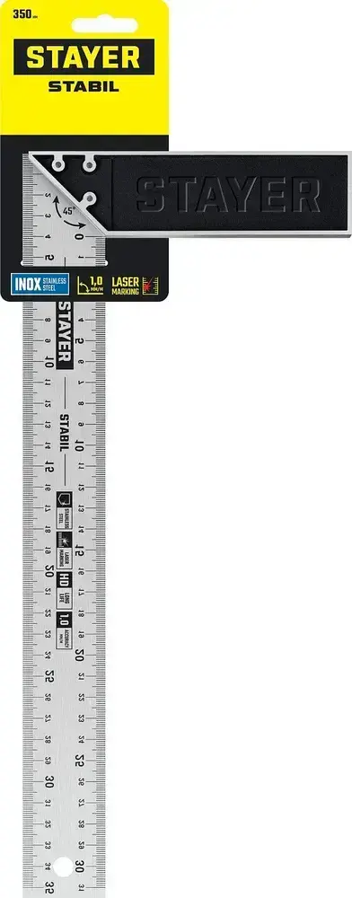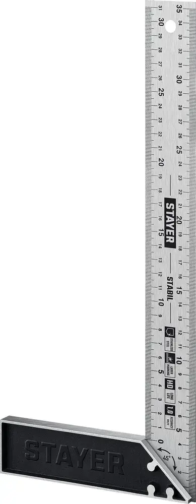 Профессиональный угольник с нержавеющим полотном, 350 мм // STAYER STABIL Professional