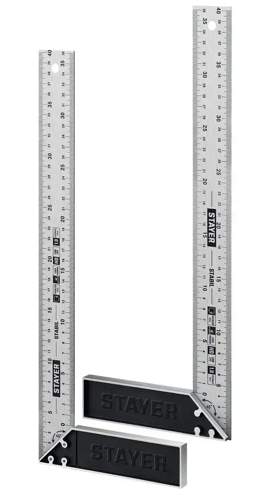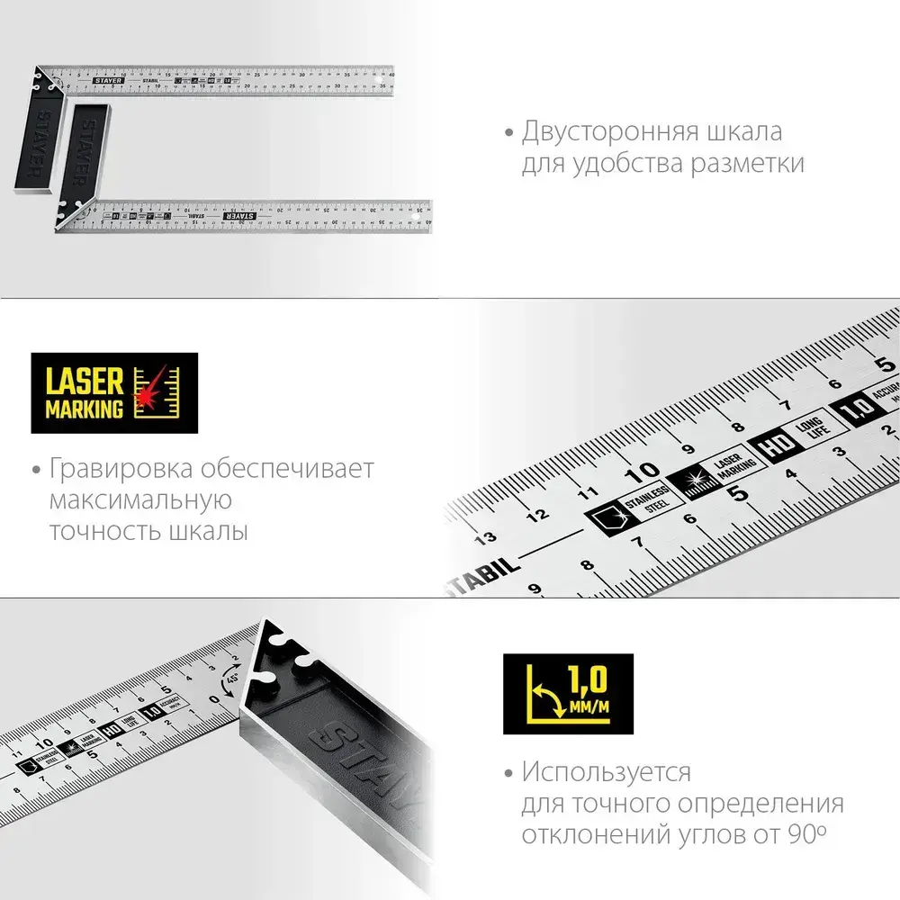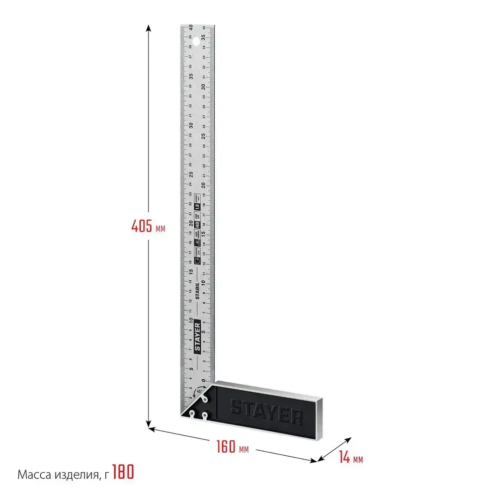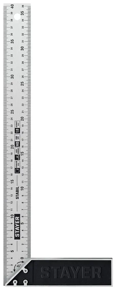 Профессиональный угольник с нержавеющим полотном, 400 мм // STAYER STABIL Professional