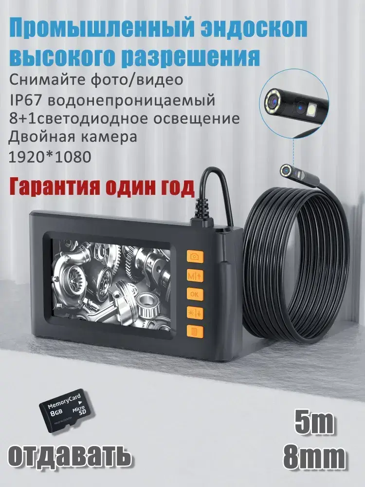 Промышленный эндоскоп HSTP P210 Full HD камера 1920 1080, 8mm 5 м кабель, IP67, 7 часов работы!