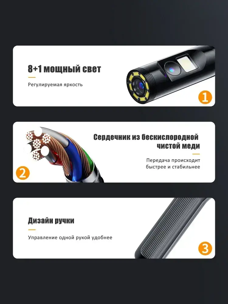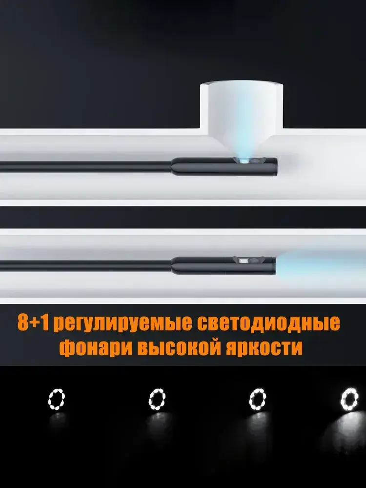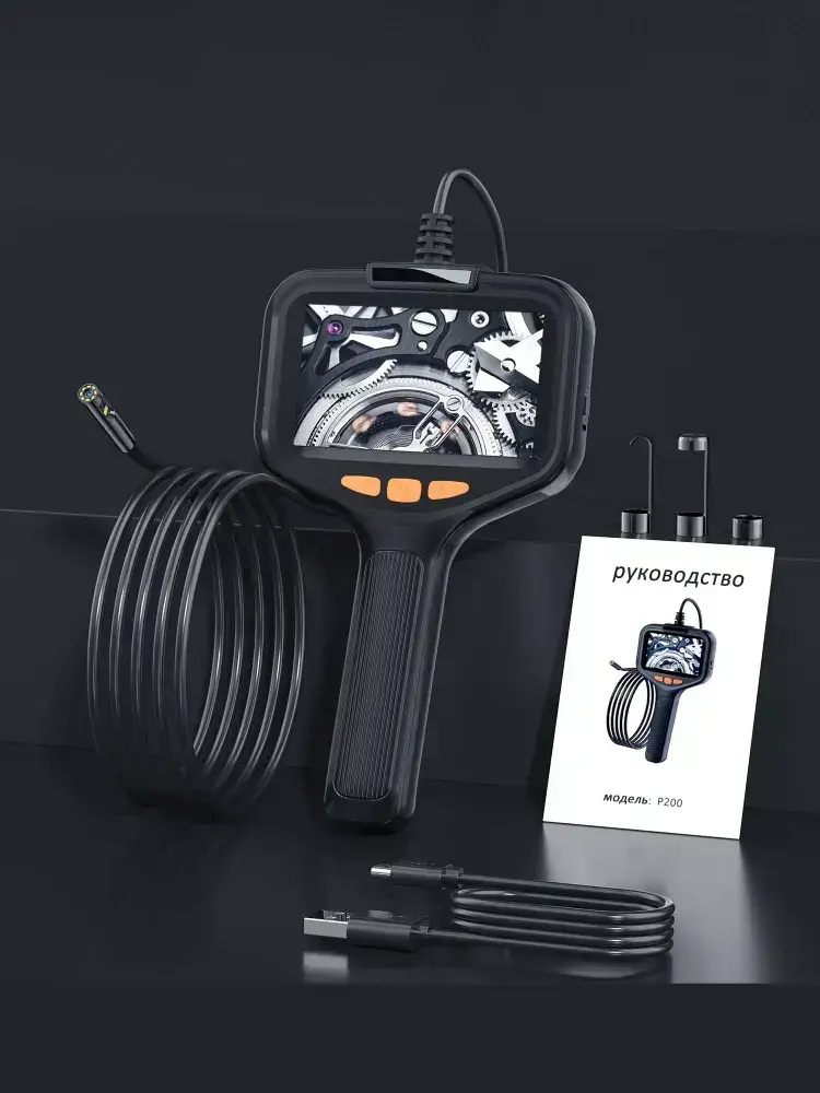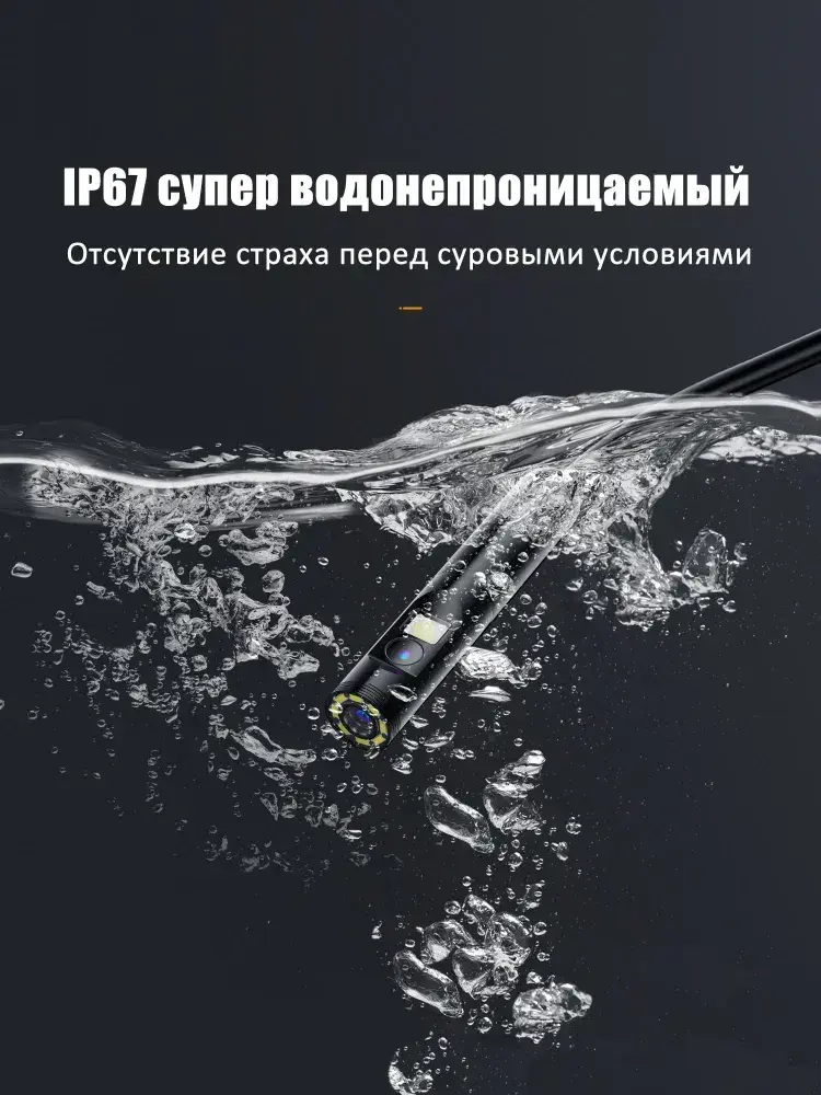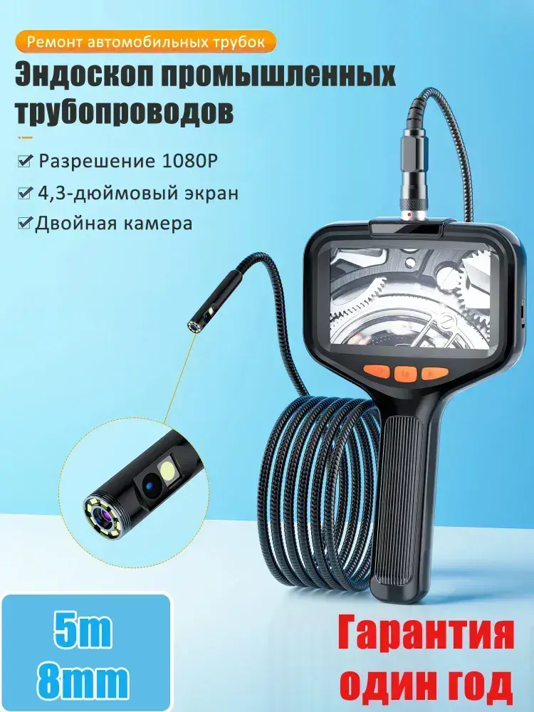 Промышленный эндоскоп с двойной камерой 8 мм, Full HD 1920 1080 и 5-метровым кабелем автономность 5 часов, Type-C, IP67!