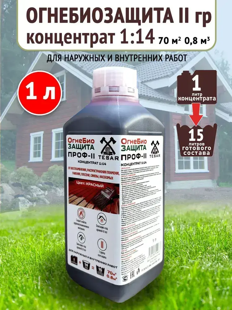 Пропитка для дерева ОгнеБиозащита TESAR концентрат 1:14 1л