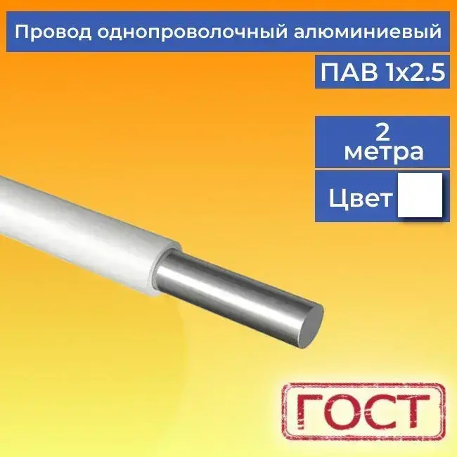 Провод/кабель однопроволочный алюминиевый ПАВ ГОСТ 1х2.5 белый 2 м.