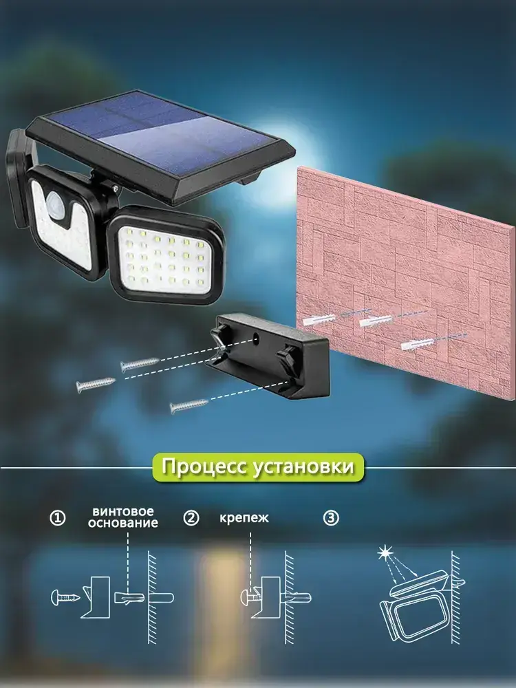 Прожектор на солнечной батарее с поворотными панелями и датчиком движения (10Вт/74Led)