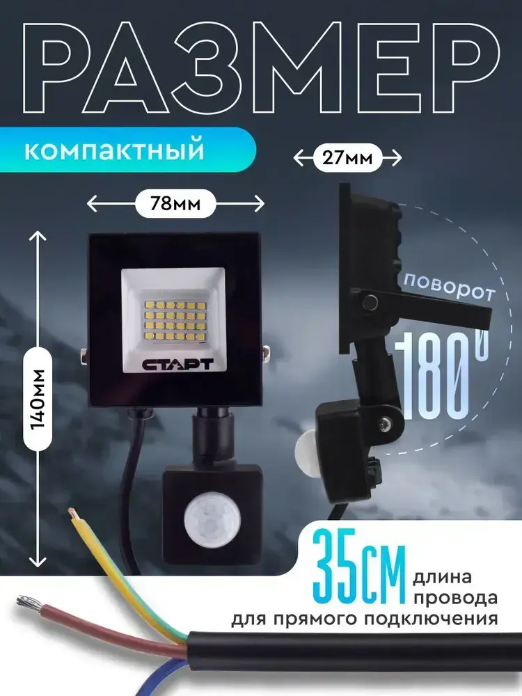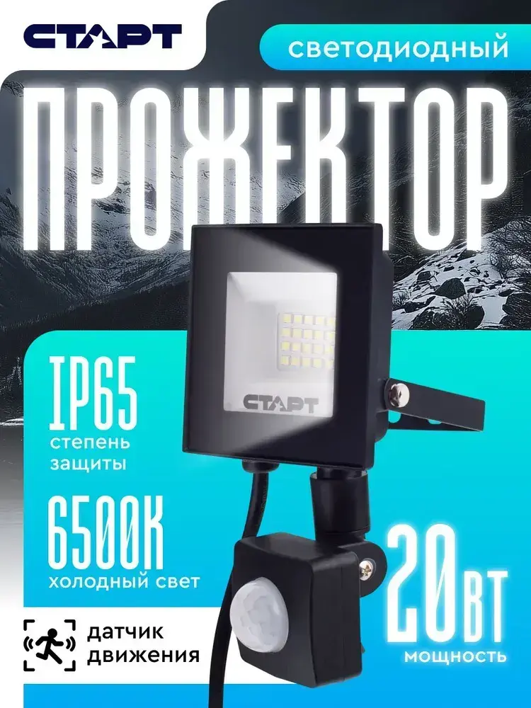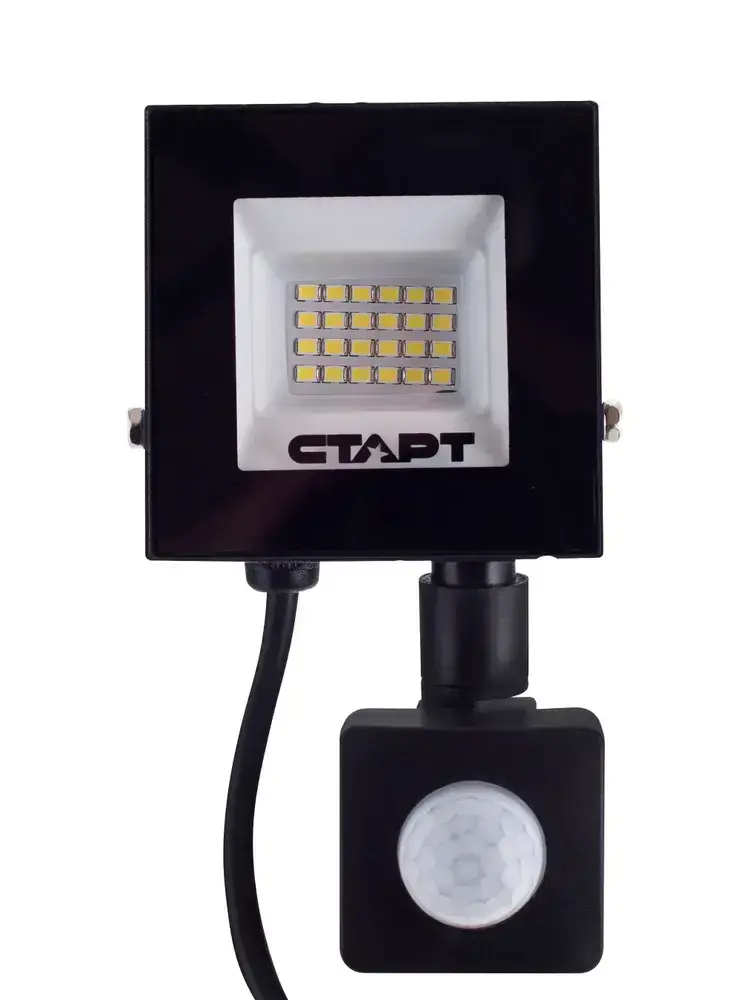 Прожектор с датчиком движения уличный 20ВТ светодиодный влагозащищенный СТАРТ, холодный белый свет