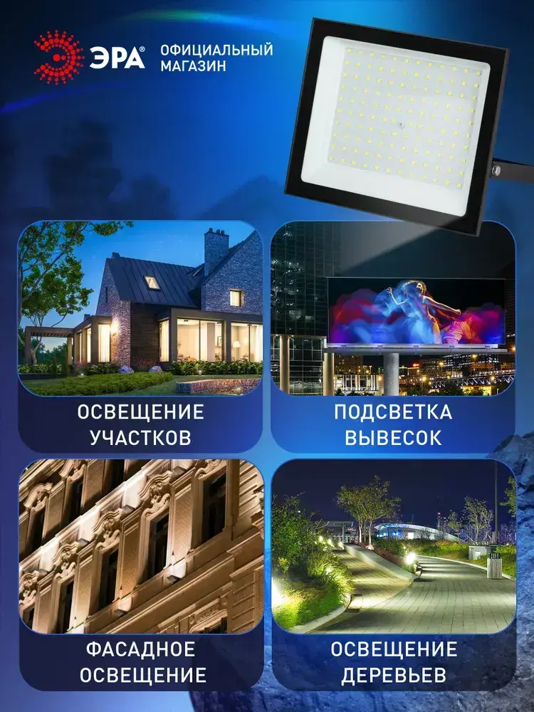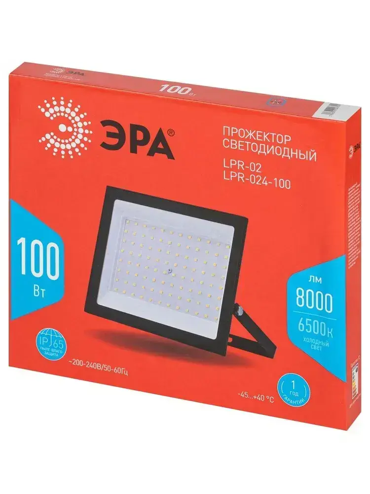 Прожектор светодиодный уличный ЭРА RED LINE LPR-024 влагозащищенный от сети, 100Вт 6500К, IP65