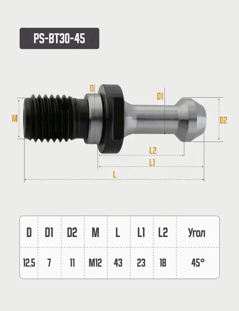 PS-BT30-45 Штревель без отверстия под СОЖ, без уплотнительного кольца