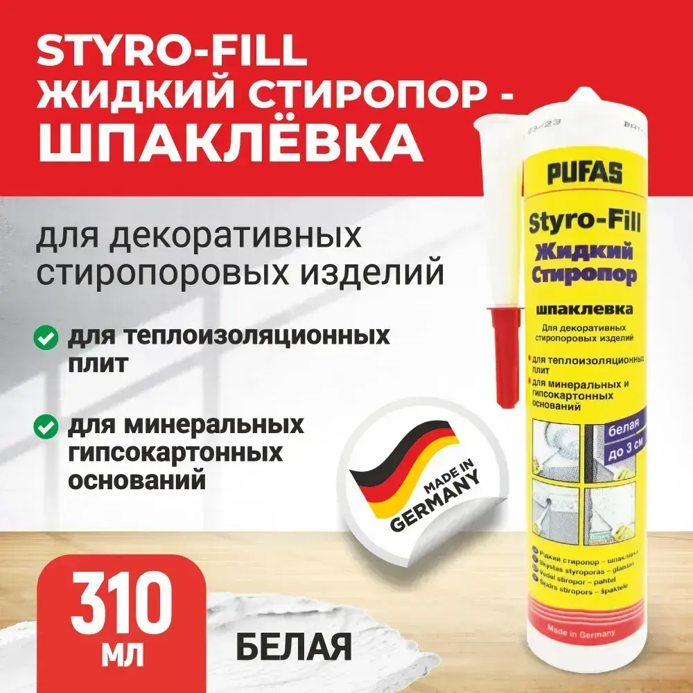 PUFAS шпаклёвка Styro-Fill жидкий стиропор (310мл) белая