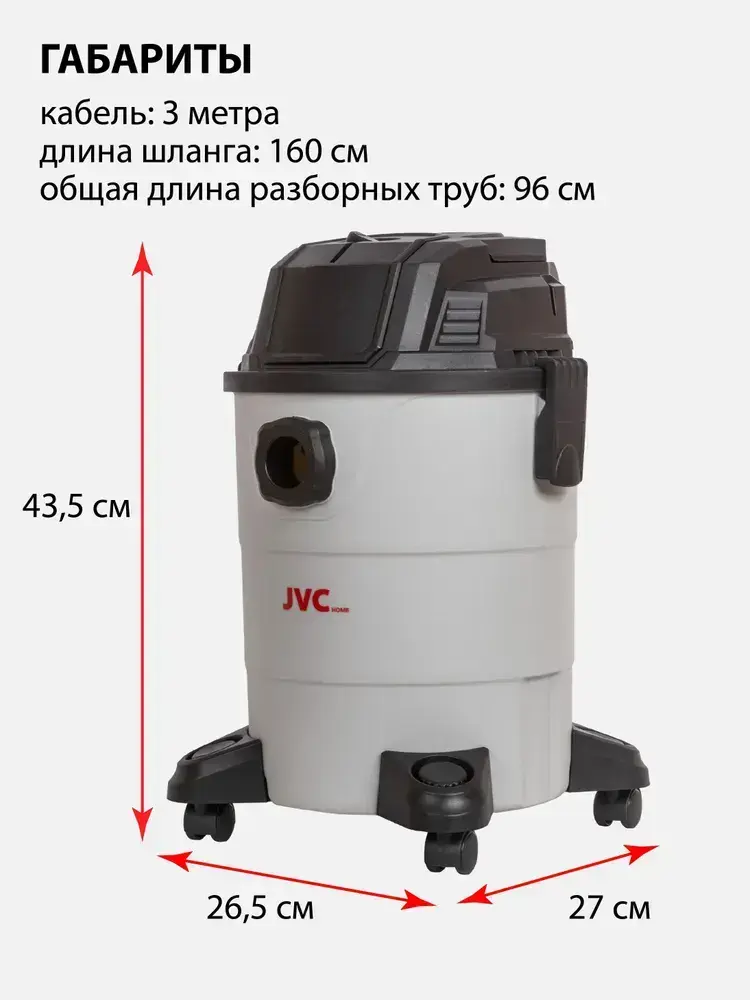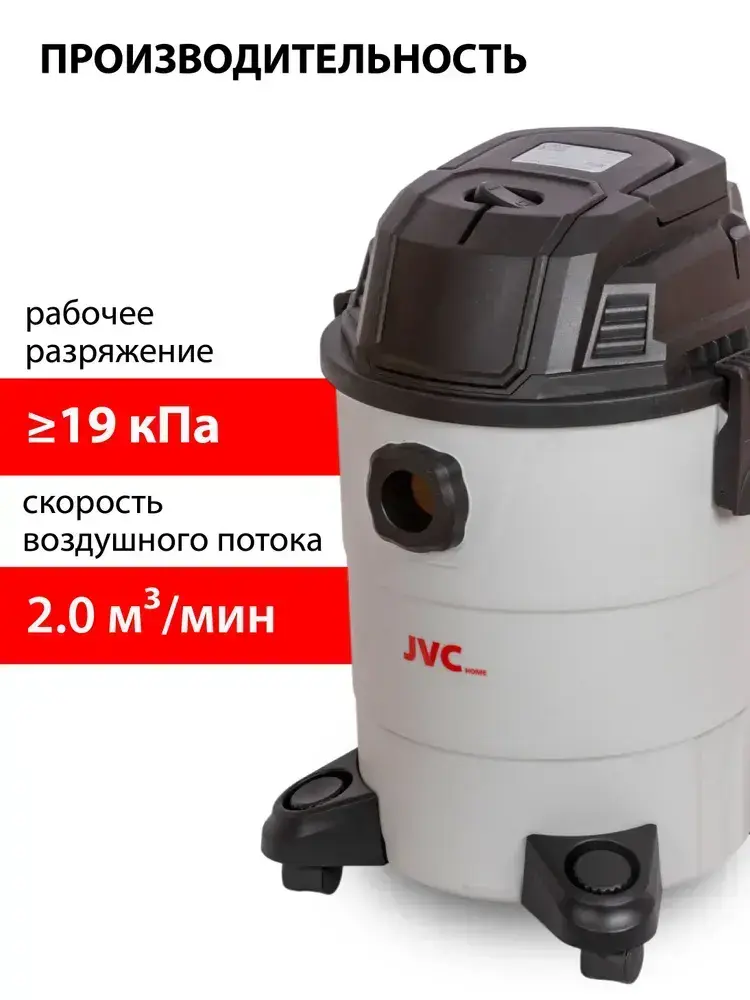Пылесос строительный JVC JH-VB215, бак 15 л, сухая уборка, сбор жидкостей, функция выдувания, 1000 Вт