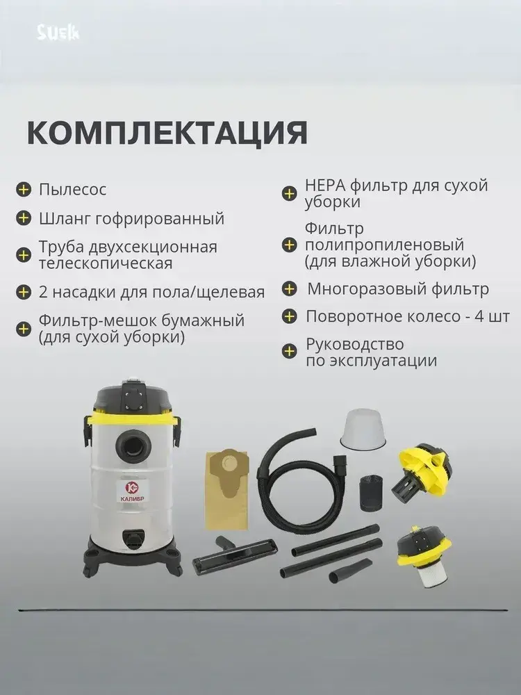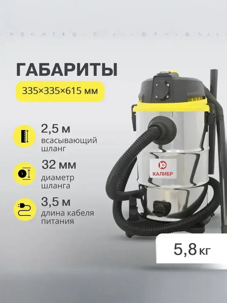 Пылесос строительный Калибр СПП-1600/30 (Мощность 1600вт ; Бак 30Л)