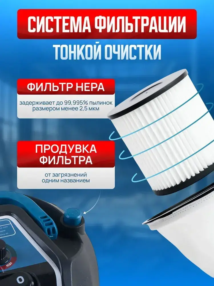 Пылесос строительный мощный 2800вт со сбором воды Cleanway D-30