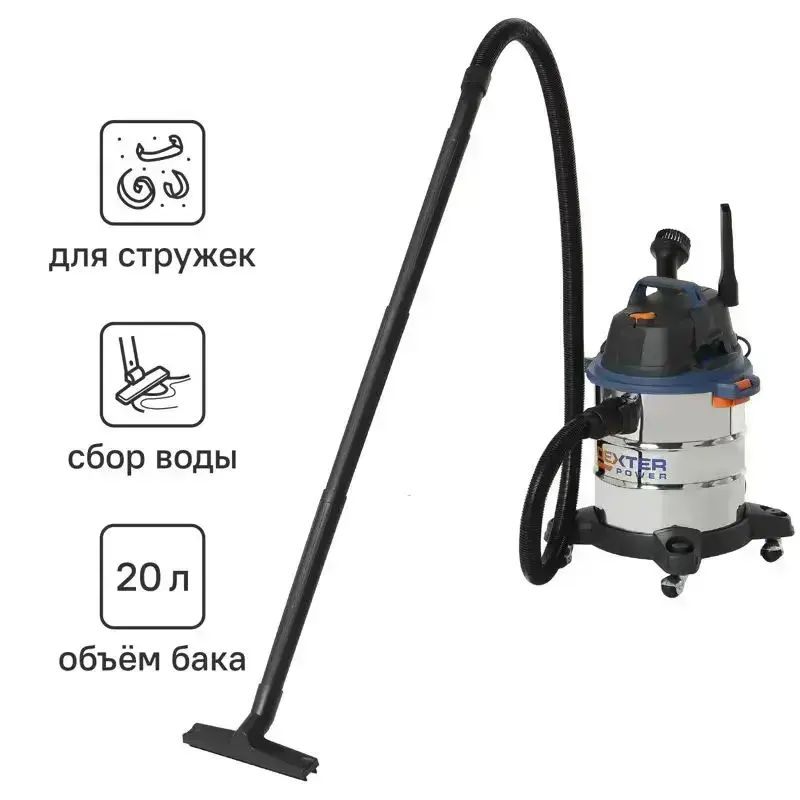 Пылесос строительный промышленный для влажной и сухой уборки Dexter VOD1420SF, 1400 Вт, 20 л