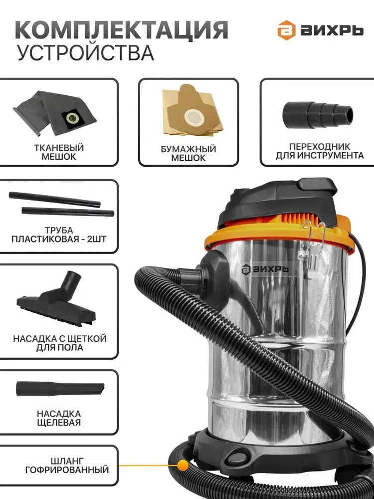 Пылесос строительный Вихрь СП-20АН, промышленный 1500 Вт