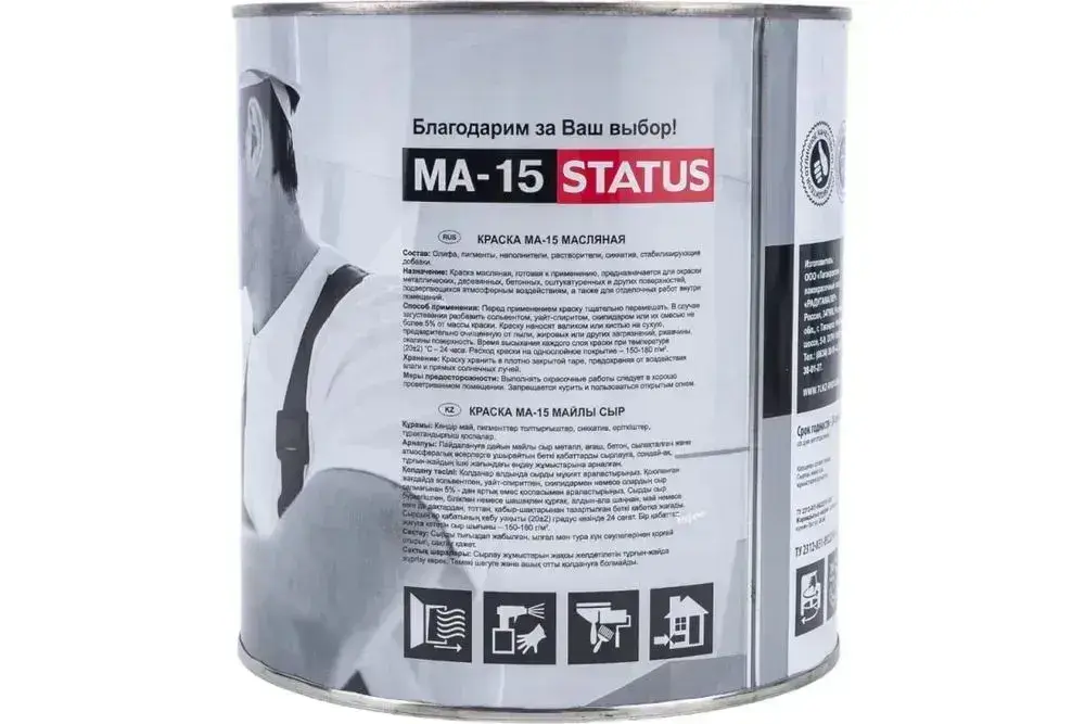РАДУГАМАЛЕР Краска Гладкая, до 60°, Масляная, Глянцевое покрытие, 1.8 кг, серый
