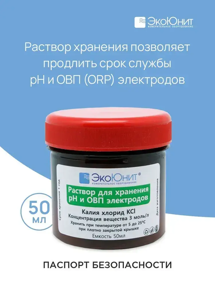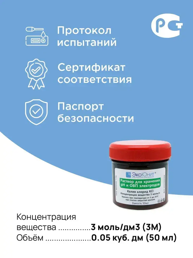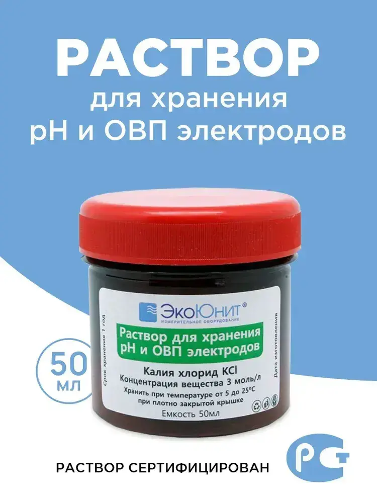 Раствор калий хлористый KCl 3Моль/л для хранения pH и ОВП электродов
