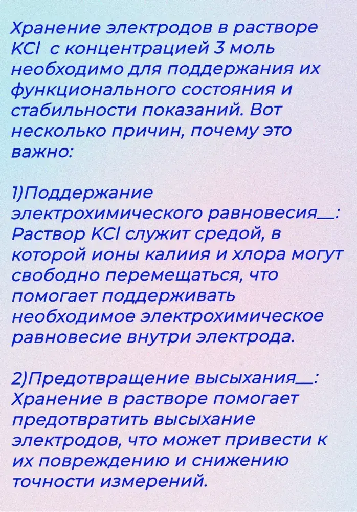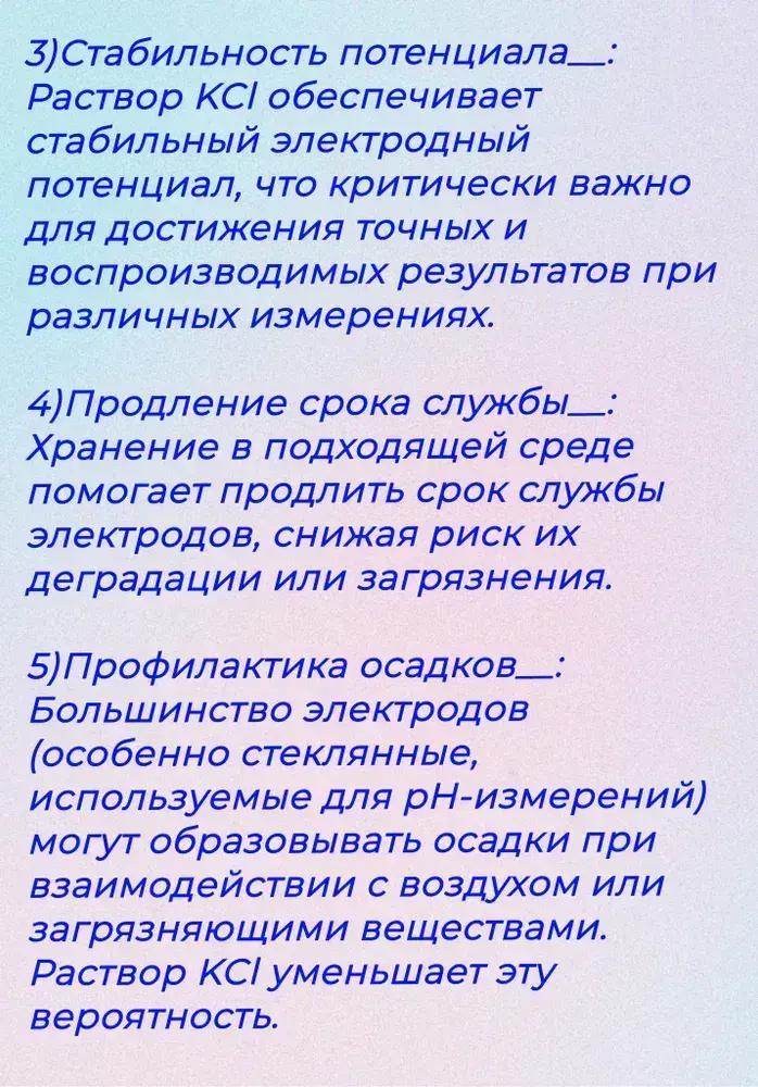 Раствор KCl 3моль/л для хранения и заправки pH и ОВП электродов