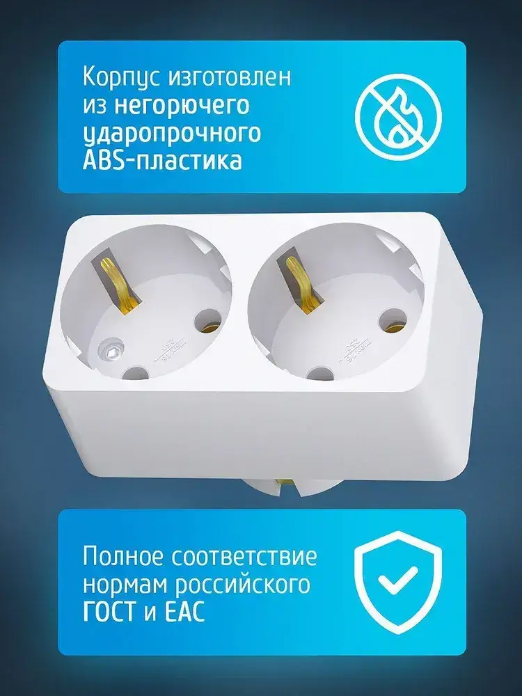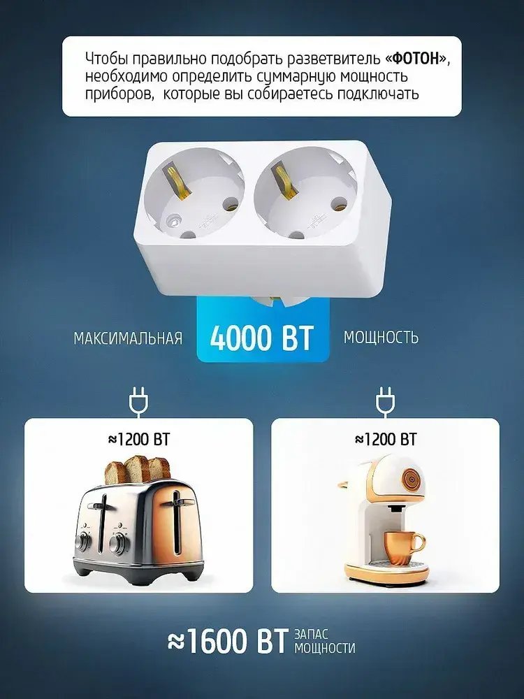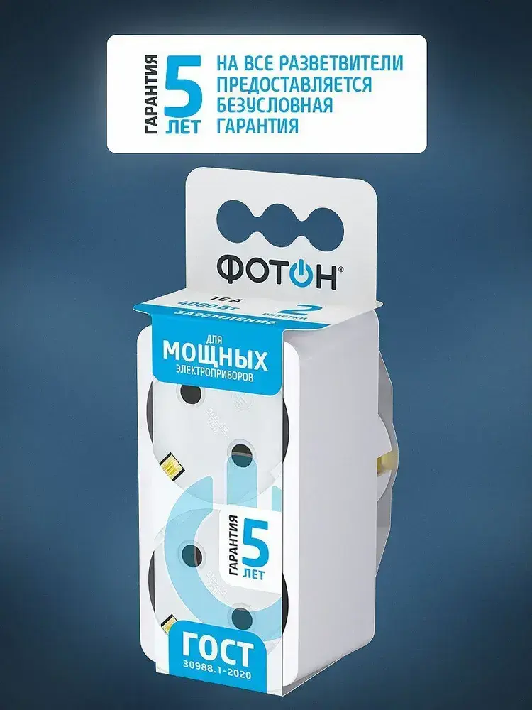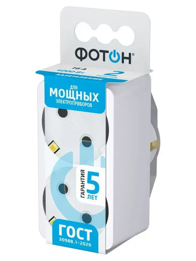 Разветвитель для розетки двойник ФОТОН 16А с заземлением