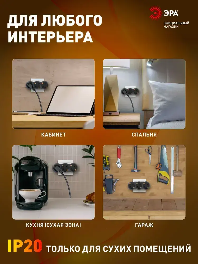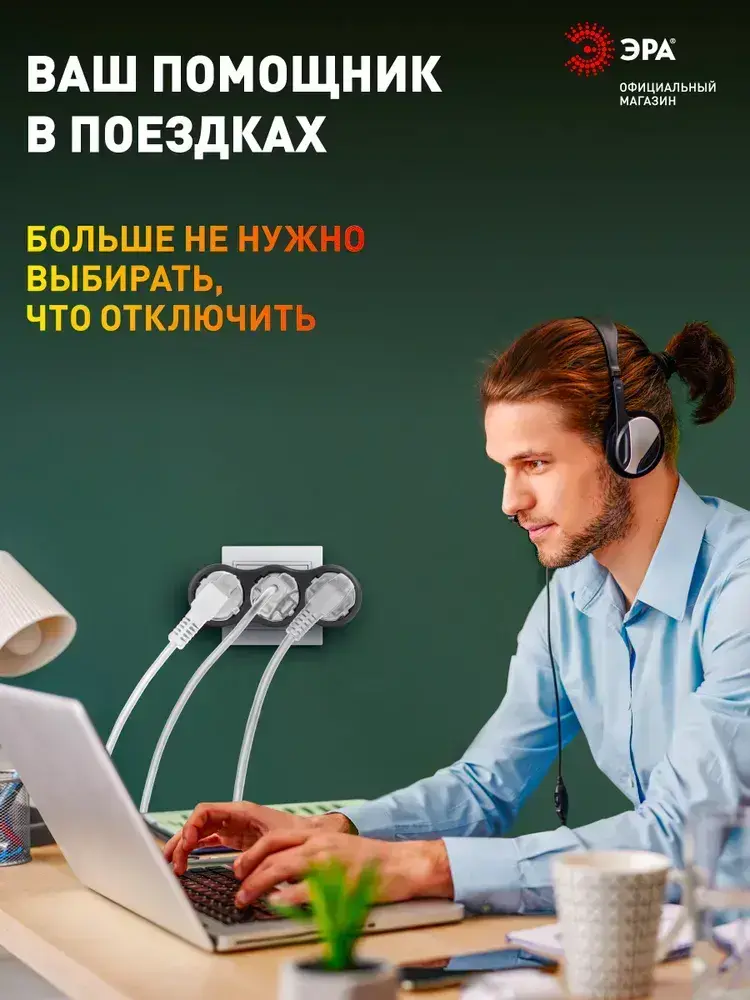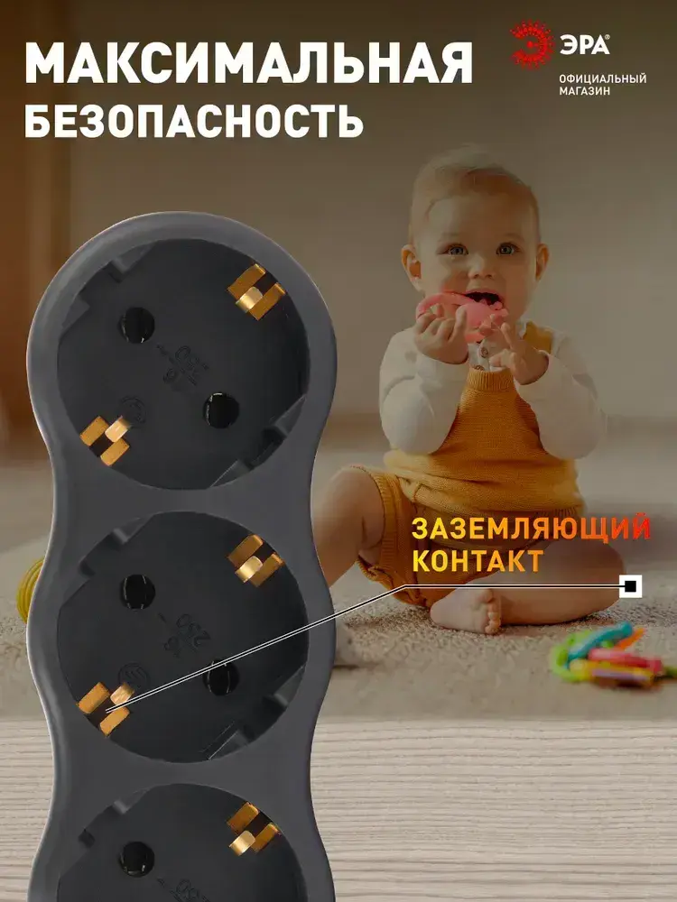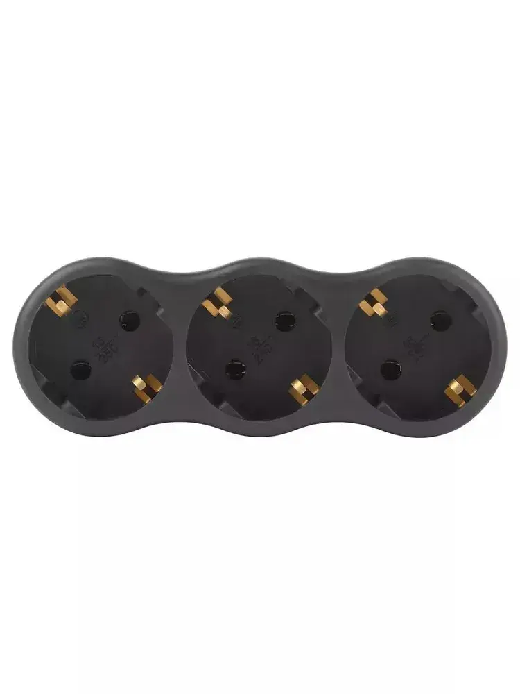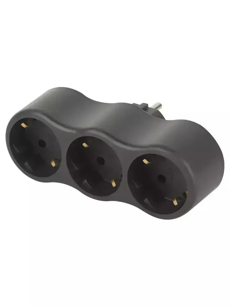 Разветвитель электрический ЭРА SPx-3e-B на 3 розетки с заземлением 16А черный