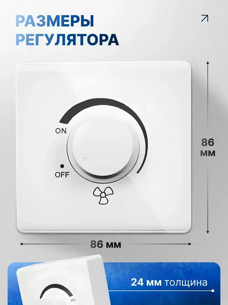 Регулятор скорости вентилятора двигателя диммер для ламп 220В - 240В 15Вт - 400Вт 16 А, Накладной монтаж, белый цвет