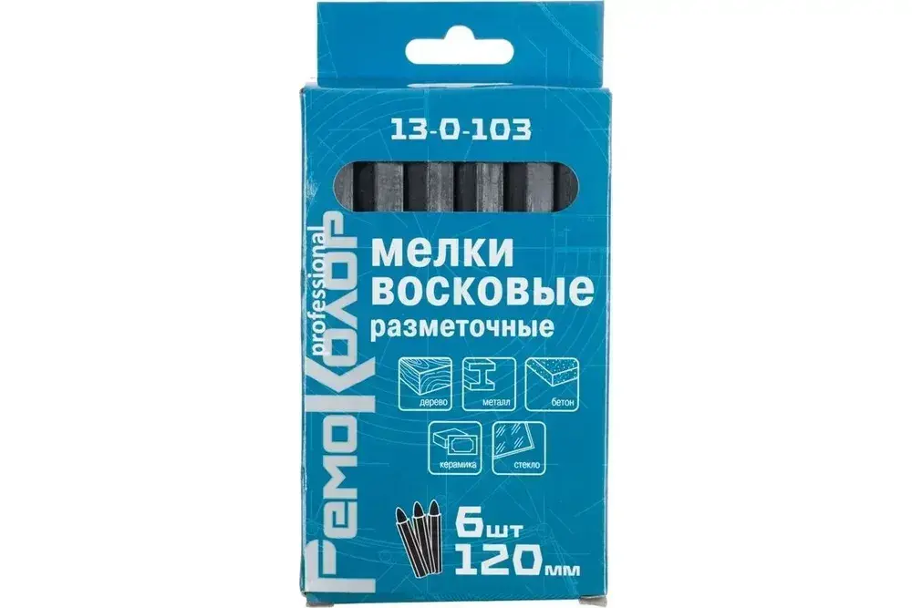 РемоКолор Мелки разметочные восковые черные, 120мм, 6шт. (13-0-103)