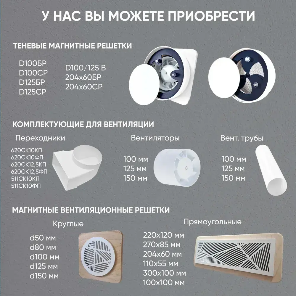 Решетка теневая магнитная вентиляционная с вентилятором 100/125 мм