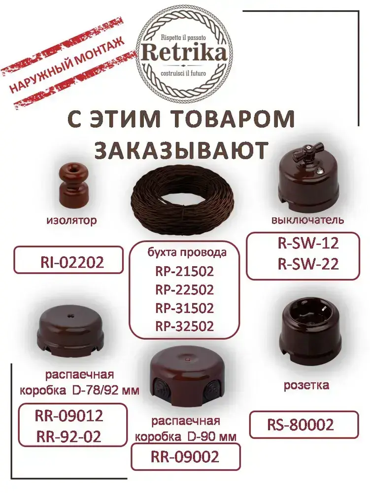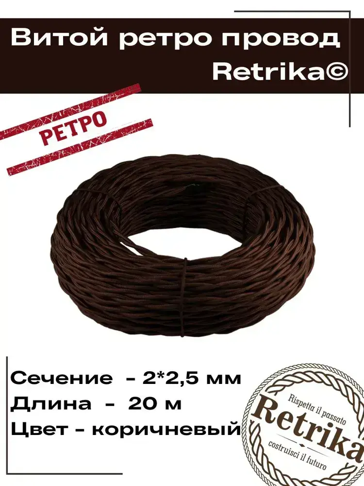 Ретро провод, витой кабель Retrika 2x2.5 ГОСТ, коричневый, 20м RP-22502-20, проводка