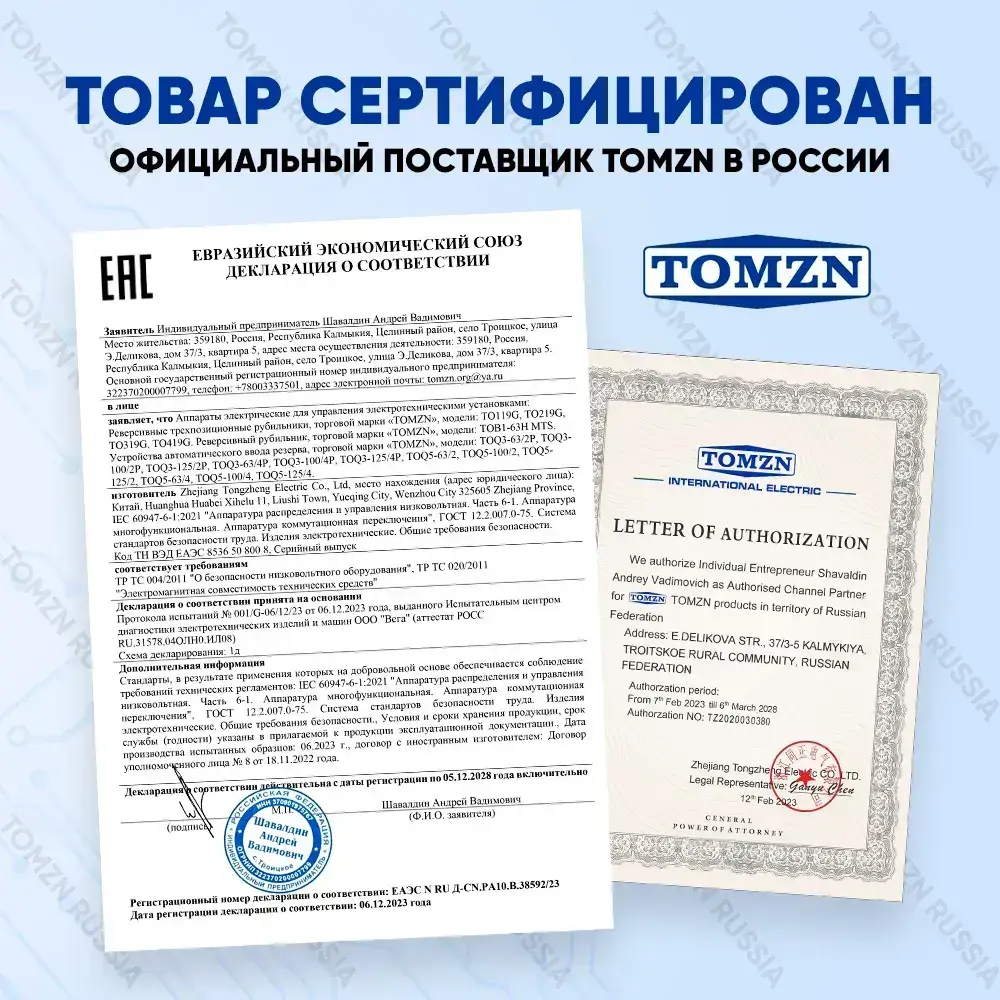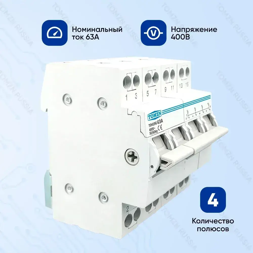 Реверсивный рубильник TOMZN TO419G 4P 63A трехпозиционный трехфазный / Ручной ввод резерва / Подключение генератора
