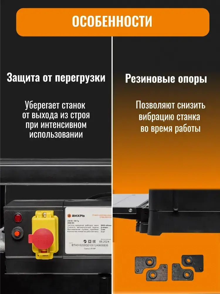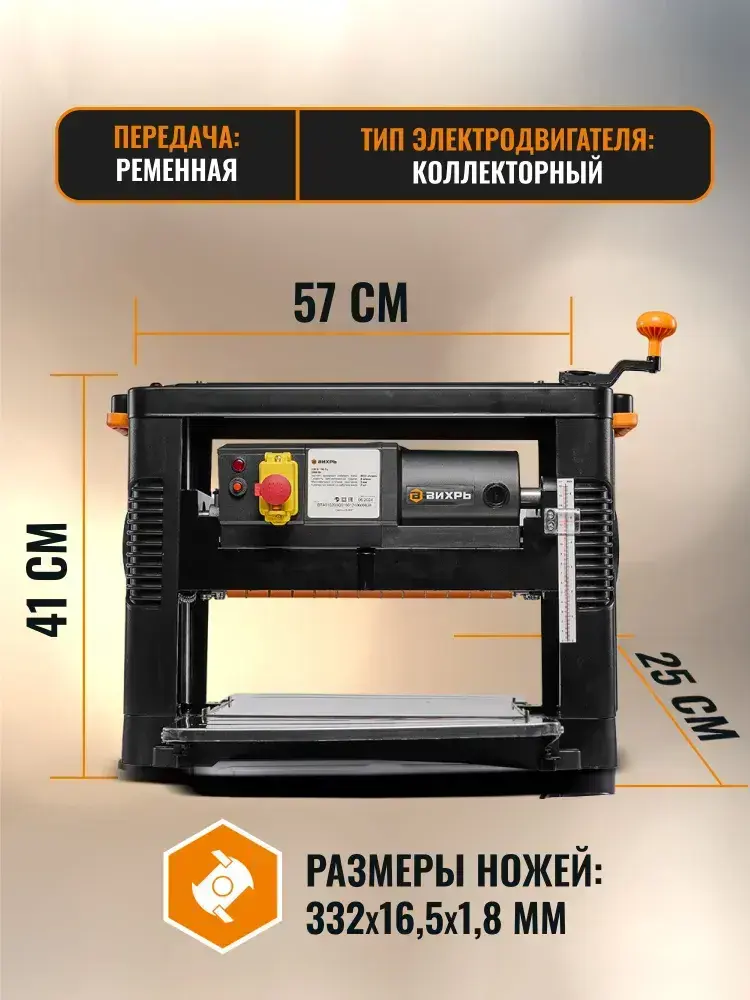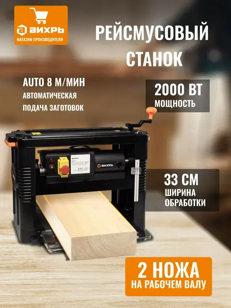 Рейсмусовый станок по дереву Вихрь СРМ-330/2.0 MP, два ножа, скорость 8 м/мин