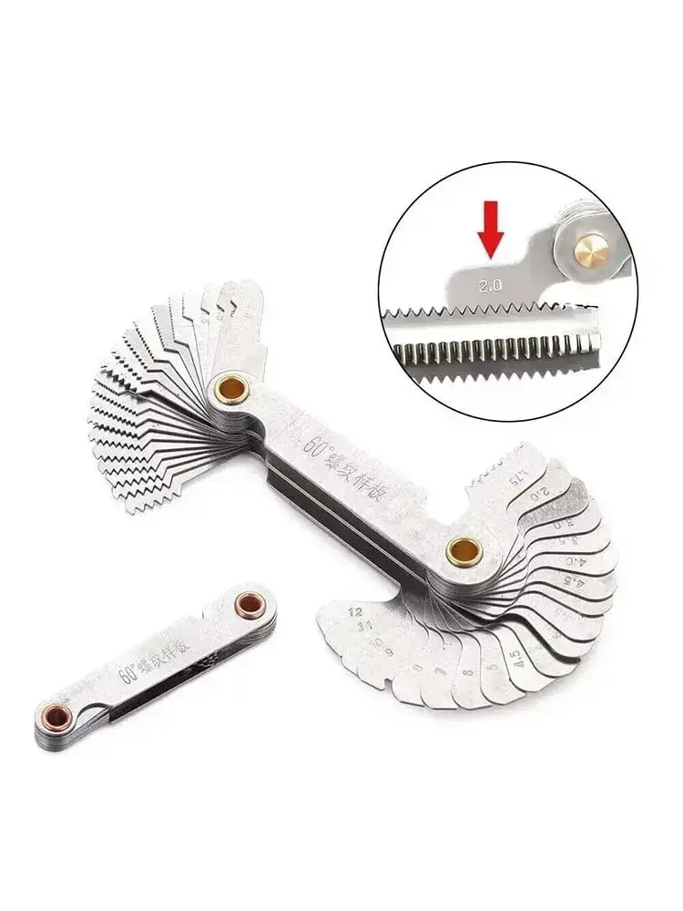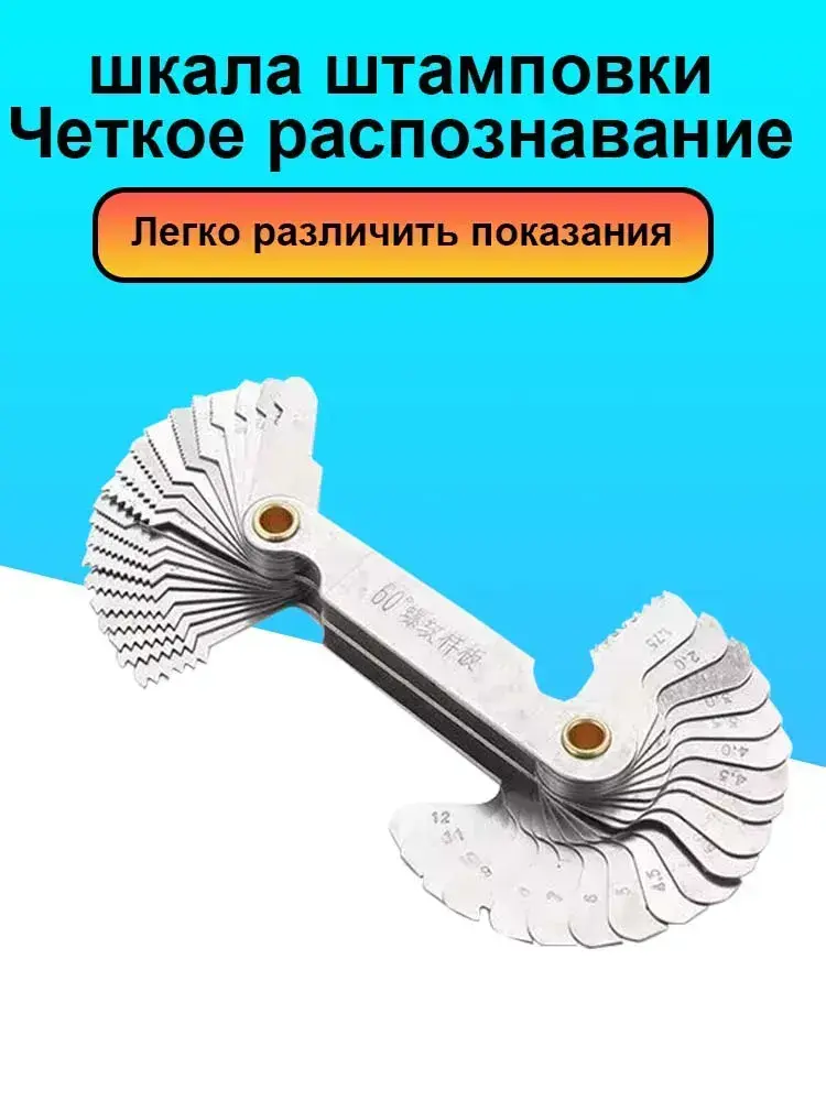 Резьбомер Метрический М60 и Дюймовый D55 Набор шаблонов Двухсторонний из стали для измерения шага резьбы