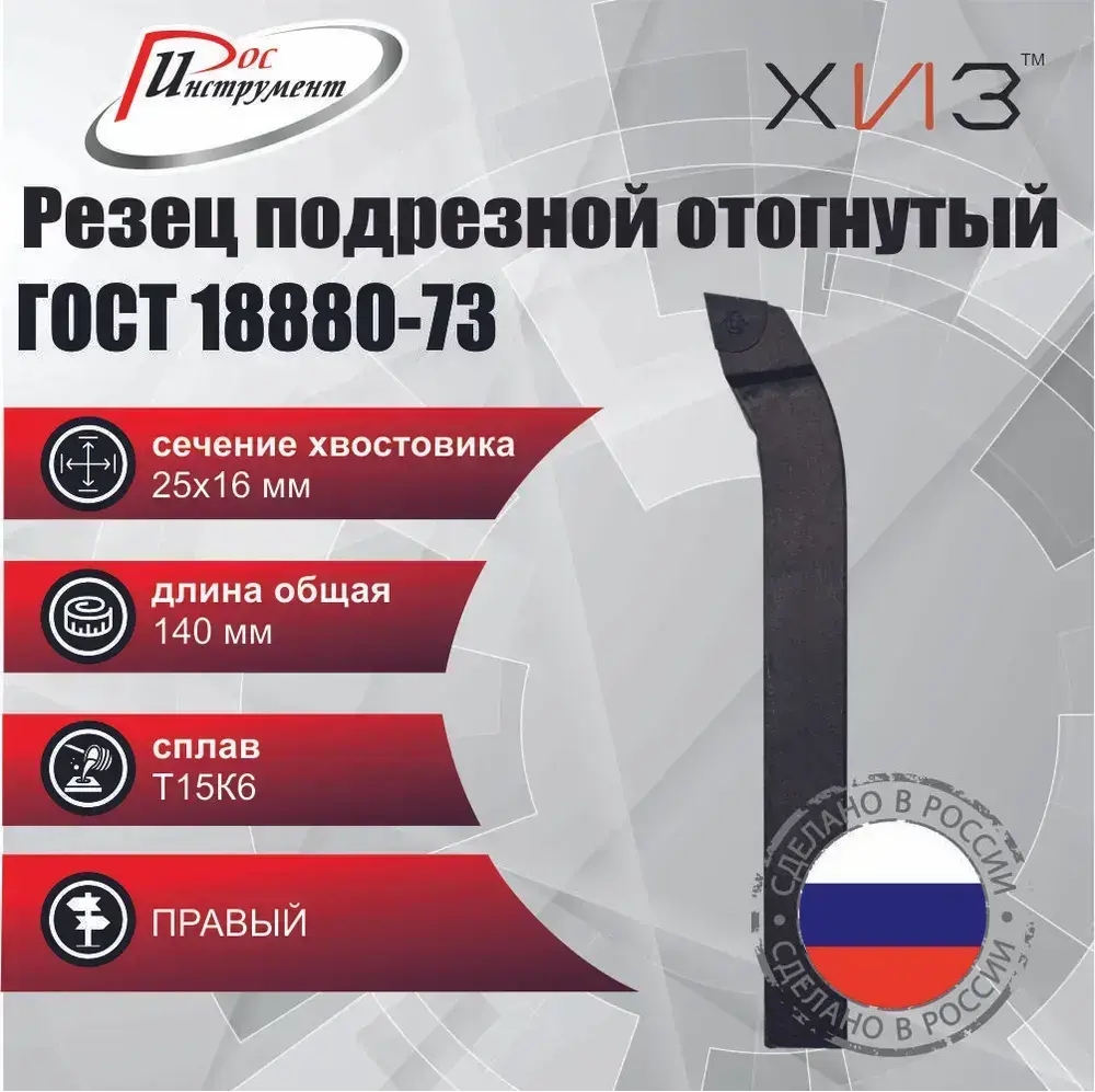 Резец подрезной отогнутый 25*16*140 Т15К6 ГОСТ 18880-73