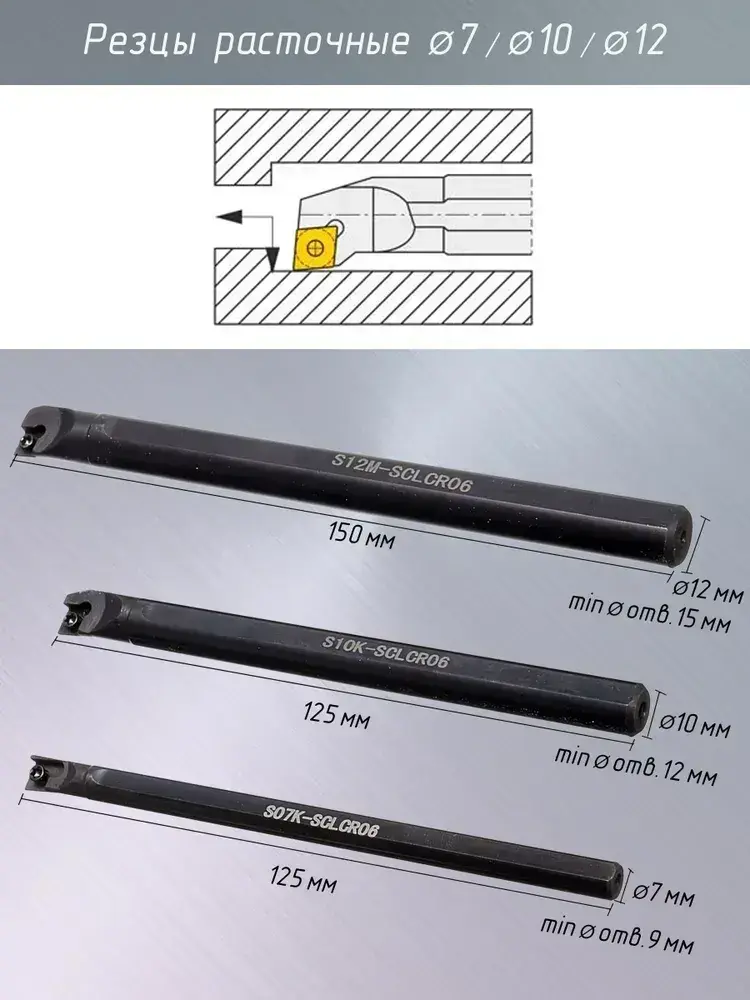 Резец токарный расточной / Набор расточных резцов 3 шт