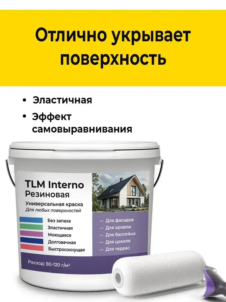 Резиновая краска для наружных работ и внутренних работ, для бетона, фасадов, стен, кровли, белая - 3,9 кг