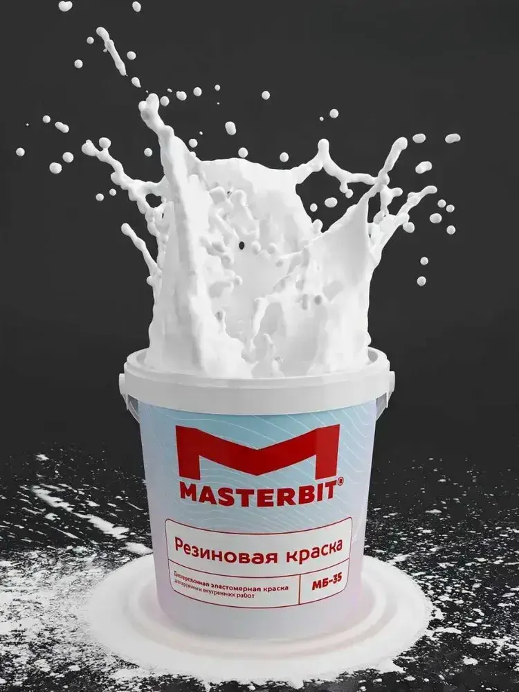 Резиновая краска МАСТЕРБИТ БЕЛАЯ 3 кг, без запаха растворителей, моющаяся, водостойкая, водоэмульсионная, быстросохнущая, полуматовая