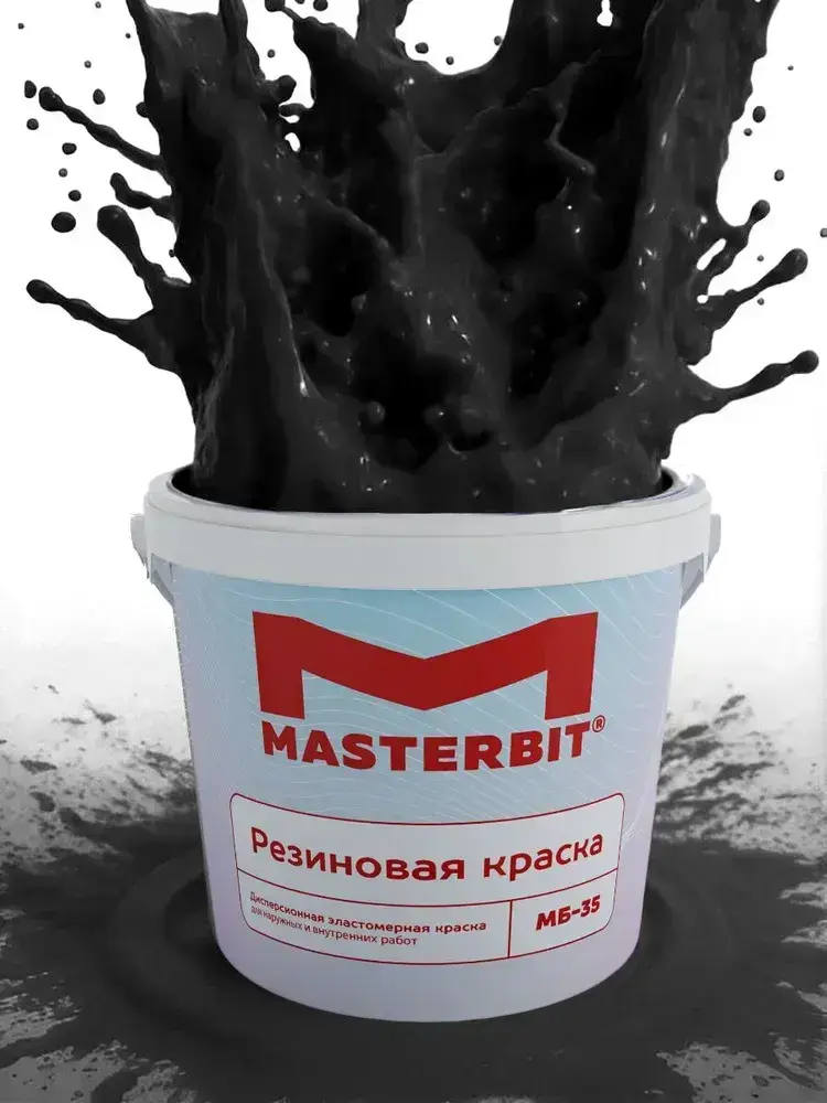 Резиновая краска МАСТЕРБИТ ЧЕРНАЯ 3 кг, без запаха растворителей, моющаяся, водостойкая, водоэмульсионная, быстросохнущая, полуматовая