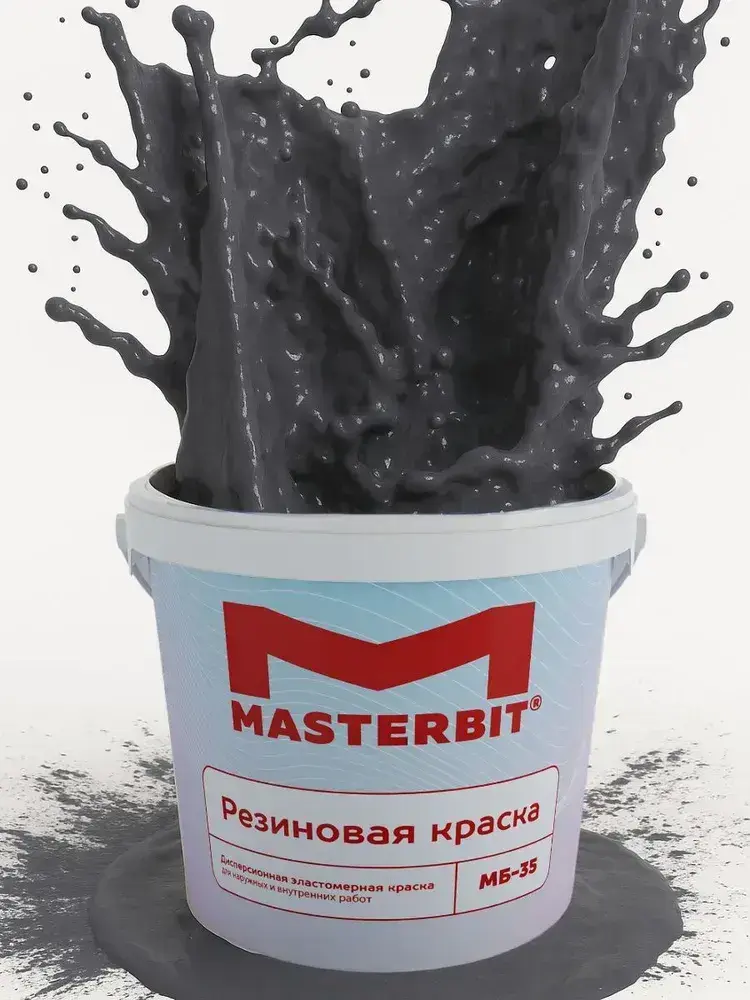 Резиновая краска МАСТЕРБИТ ГРАФИТ 12 кг, фасадная, интерьерная, для наружных и внутренних работ, по бетону, по дереву и ОСБ, по загрунтованному металлу