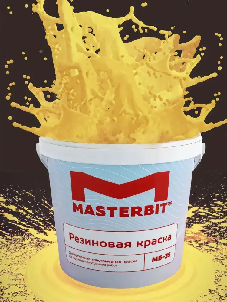 Резиновая краска МАСТЕРБИТ ЖЕЛТАЯ 3 кг, без запаха растворителей, моющаяся, водостойкая, водоэмульсионная, быстросохнущая, полуматовая