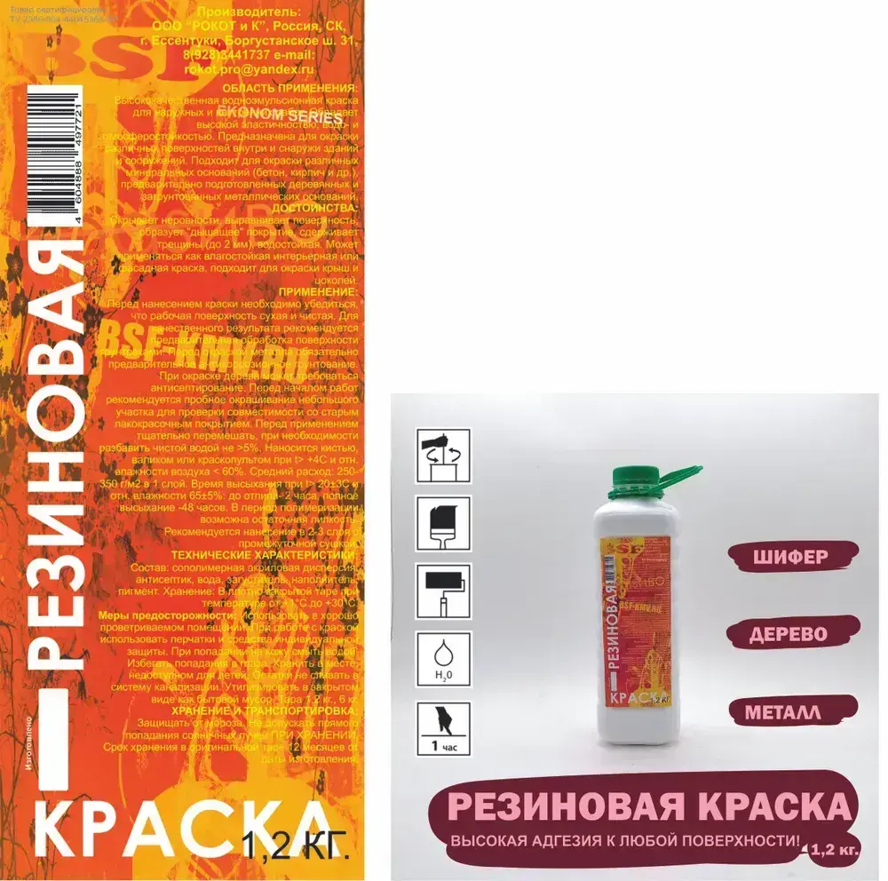 Резиновая краска, силиконизированная, для фасадного декора, для трещин, 1,2 кг.