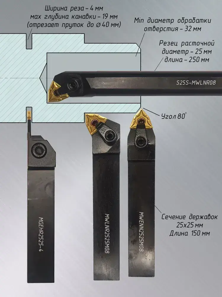 Резцы токарные по металлу 25х25 со сменными пластинами