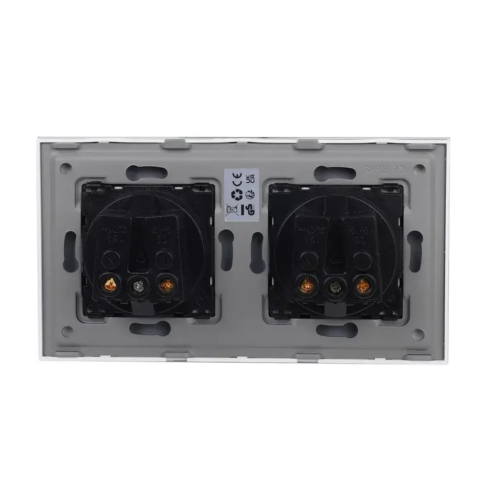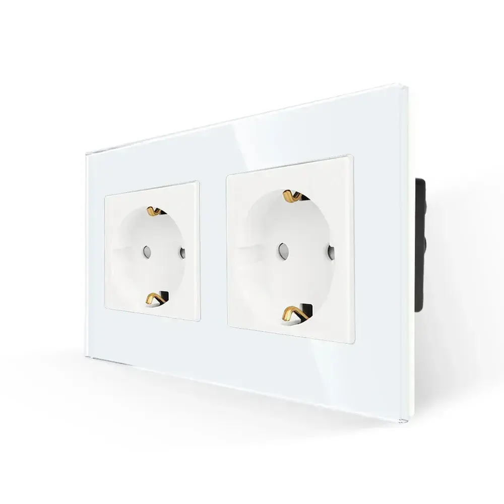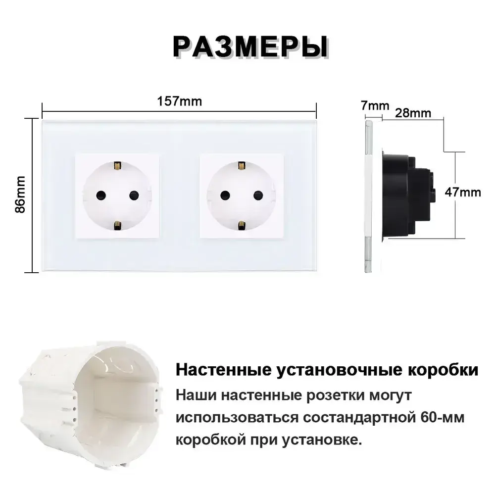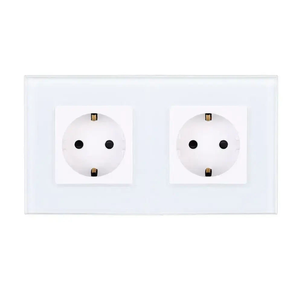 Розетка 16А 250V 2 пост рамка закаленное стекло встраиваемая розетка с заземлением