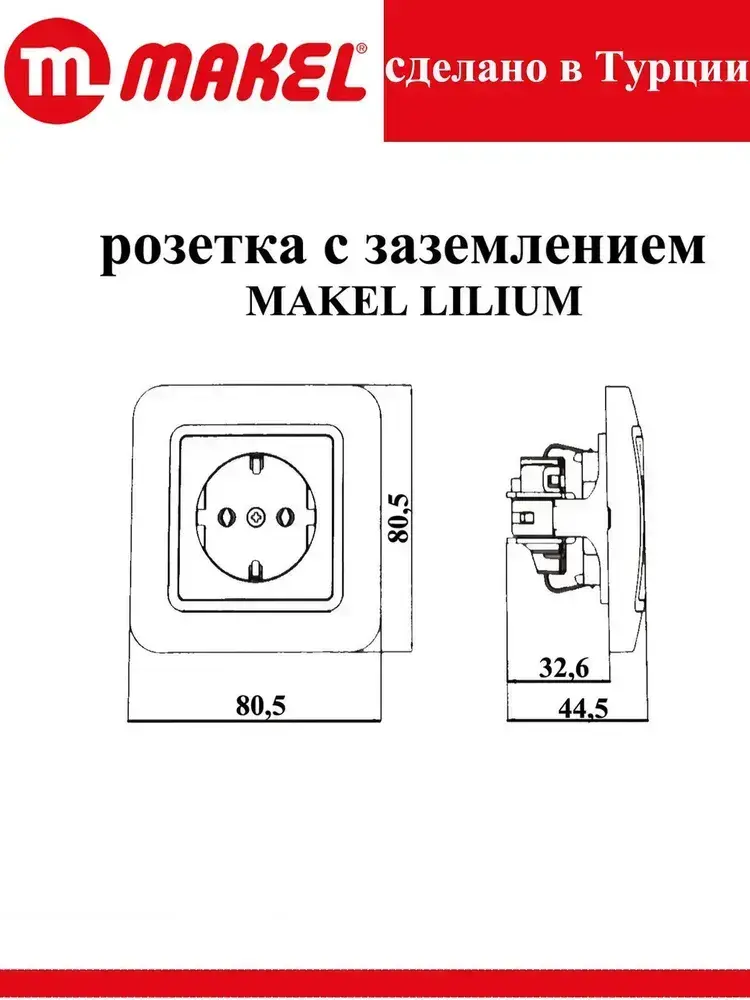 Розетка 70028 Lilium Makel одинарная с заземлением белая