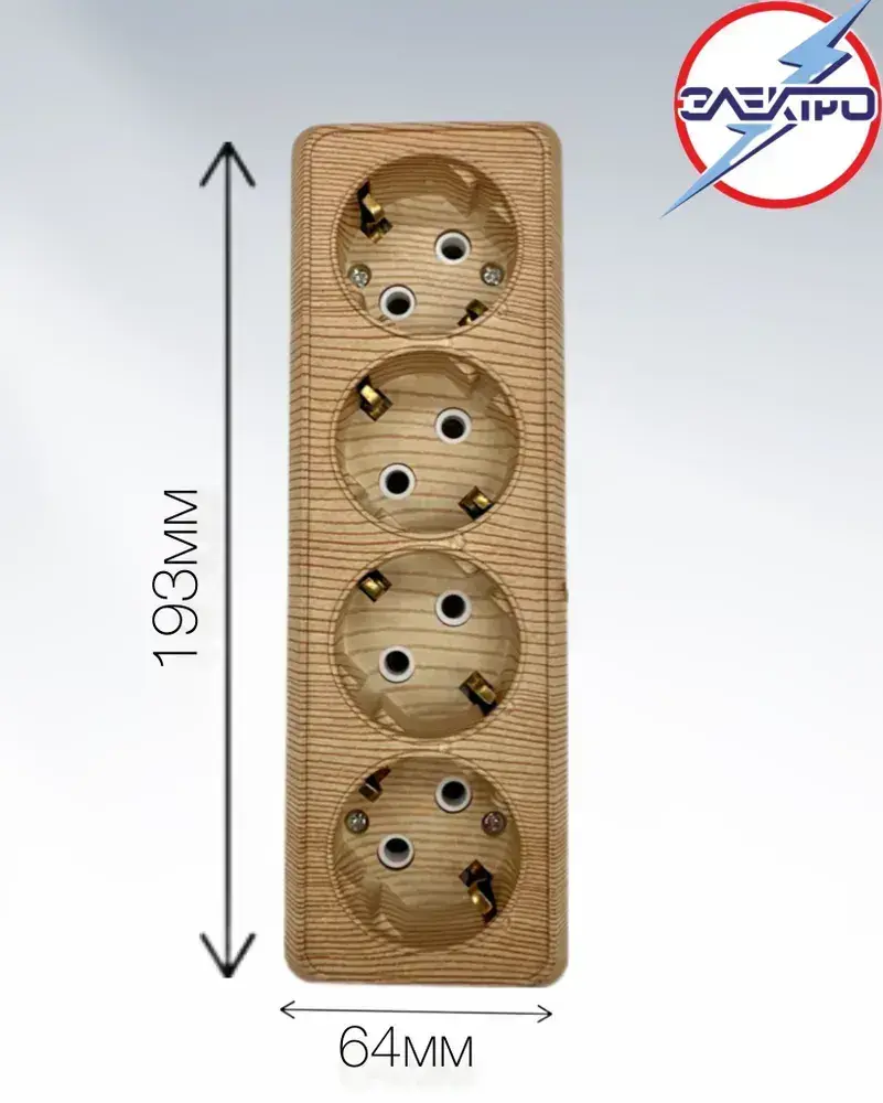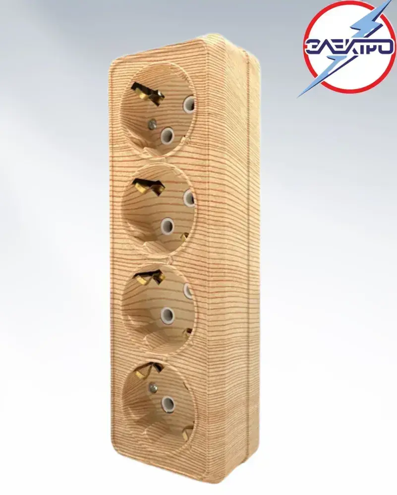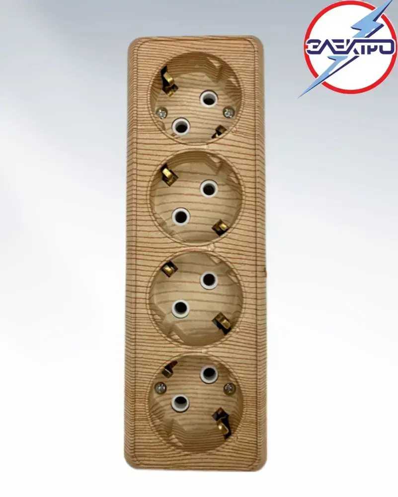 Розетка четверная накладная с заземлением, сосна