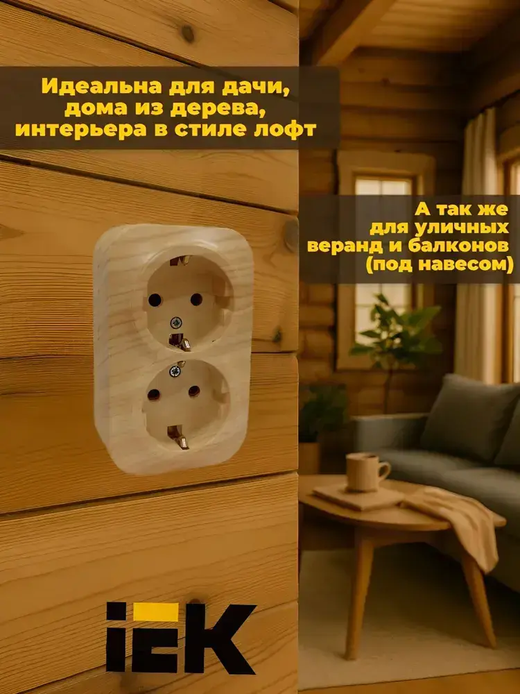Розетка IEK 2-х местная GLORY РС22-3-ХС 16А, накладная, с заземлением, сосна