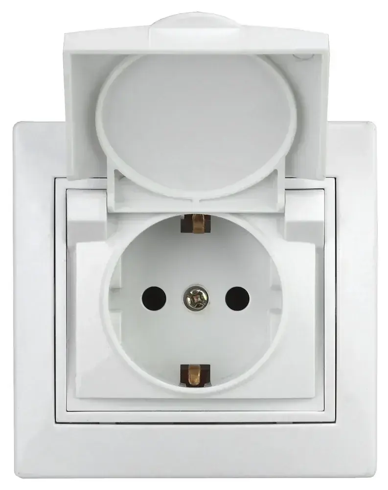 Розетка Intro Plano 1-203-01 с заземлением 2P+E Schuko с крышкой 16А-250В IP20 скрытой установки белая